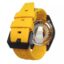 قاب گرد ۴۵ میلیمتری ساعت از پلاستیک مقاوم ساخته شده که علاوه بر وزن سبک، دوام بالایی در برابر ضربه و فشار روزمره دارد. ترکیب رنگ مشکی قاب با صفحه زرد–مشکی، جلوهای چشمگیر و اسپرت ایجاد کرده و خوانایی مناسبی را در شرایط نوری مختلف فراهم میکند. ارتفاع قاب ۱۳ میلیمتر نیز باعث میشود ساعت حضور برجستهای روی مچ دست داشته باشد بدون آنکه استفاده روزمره را دشوار کند.