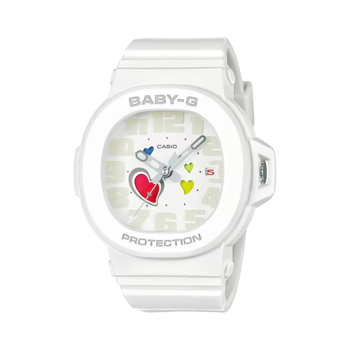 ساعت مچی BABY-G BGA-10-7A بهصورت آنالوگ طراحی شده که به یادگیری بهتر خواندن ساعت برای کودکان کمک میکند. صفحه چندرنگ با نشانگرهای واضح، خوانایی مناسبی دارد و باعث میشود کودک بهراحتی زمان را تشخیص دهد. بند رزینی سفید با قفل سگکی ساده، امکان تنظیم آسان بین ۱۲۵ تا ۱۸۰ میلیمتر را فراهم کرده و بهخوبی روی مچ دست فیکس میشود.