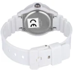 بدنه و قاب ساعت از رزین مقاوم ساخته شدهاند که ضمن استحکام بالا، وزن بسیار سبکی دارند. وزن تنها ۳۴ گرم باعث میشود ساعت در طول روز هیچگونه احساس سنگینی ایجاد نکند و برای دستهای کوچک کاملاً مناسب باشد. فرم قاب گرد در کنار رنگ سفید، ظاهری تمیز، شاد و کودکپسند ایجاد کرده که بهراحتی با انواع لباسهای روزمره و اسپرت هماهنگ میشود. شیشه معدنی مقاوم نیز از صفحه ساعت در برابر خط و خشهای معمول محافظت میکند.