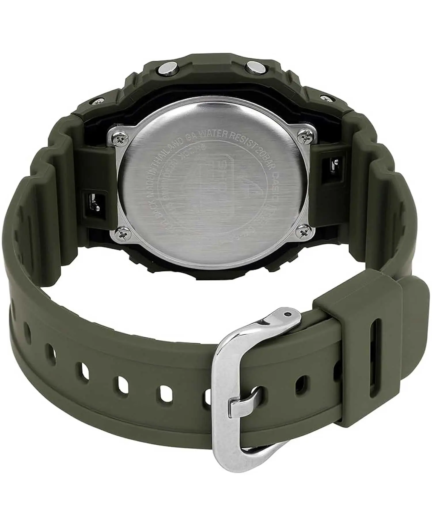 ساعت مچی مردانه G-SHOCK DW-5610UU-3DR بهصورت کاملاً دیجیتال طراحی شده و اطلاعات ضروری را با وضوح بالا نمایش میدهد. شیشه معدنی مقاوم از صفحه ساعت در برابر خط و خشهای روزمره محافظت میکند. ابعاد متعادل ساعت (۴۸.۹ × ۴۳.۸ × ۱۳.۵ میلیمتر) در کنار وزن سبک ۵۲ گرم، باعث میشود ساعت بهخوبی روی مچ دست قرار بگیرد و در استفاده طولانیمدت ایجاد خستگی نکند. بند رزینی انعطافپذیر با قفل سگکی ساده نیز فیت شدن دقیق و راحتی بیشتر را تضمین میکند.