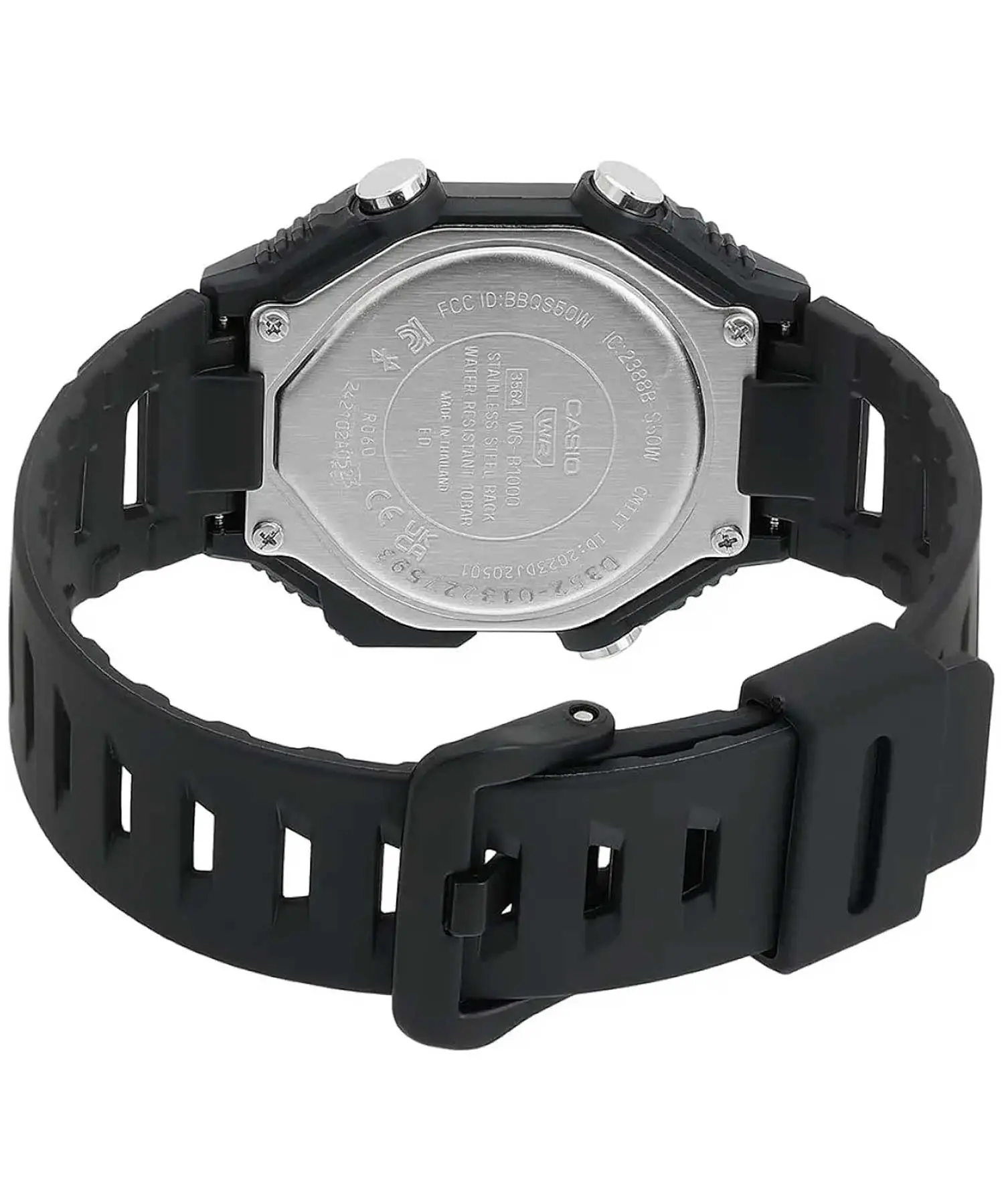 ساعت مچی دیجیتال CASIO STANDARD WS-B1000-1AVDF یک گزینه سبک، بادوام و کاربردی برای استفاده روزانه و فعالیتهای ورزشی است. این مدل با طراحی یونیسکس عرضه شده و به دلیل بدنه، قاب و بند تماماً رزینی، مقاومت بالایی در برابر ضربه و فرسودگی دارد. رنگ مشکی / دودی تیره در بدنه، بند و صفحه، ظاهری مینیمال، اسپرت و هماهنگ ایجاد کرده و فرم چندضلعی قاب نیز جلوه ساعت را مدرنتر و جذابتر نشان میدهد.