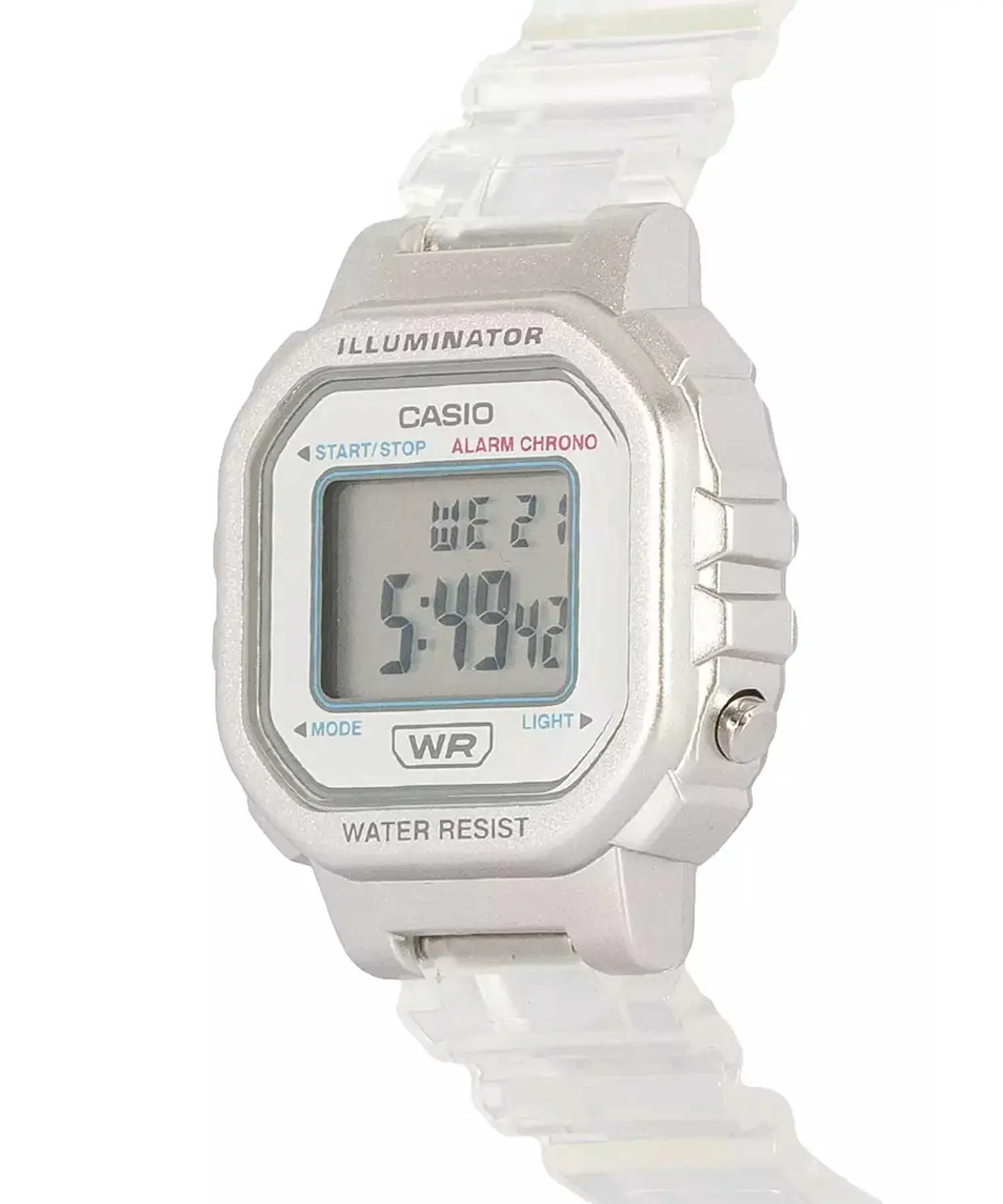 قاب مربعی–مستطیلی این مدل که از جنس رزین مقاوم ساخته شده، ظاهری ساده اما مدرن دارد و رنگ نقرهای بدنه، آن را به یکی از خوشاستایلترین مدلهای سری LA تبدیل کرده است. صفحه ساعت با رنگ خاکستری/طوسی طراحی شده و هماهنگی جذابی با بدنه نقرهای ایجاد میکند؛ ترکیبی که برای استایل مینیمال، روزمره و حتی استایل نوجوانانه بسیار مناسب است. بند رزینی شفاف و نیمهشفاف، ظاهر ساعت را خاصتر کرده و با قابلیت تنظیم بین ۱۲۵ تا ۱۸۰ میلیمتر بهراحتی برای مچهای ظریف تا متوسط قابل تنظیم است.