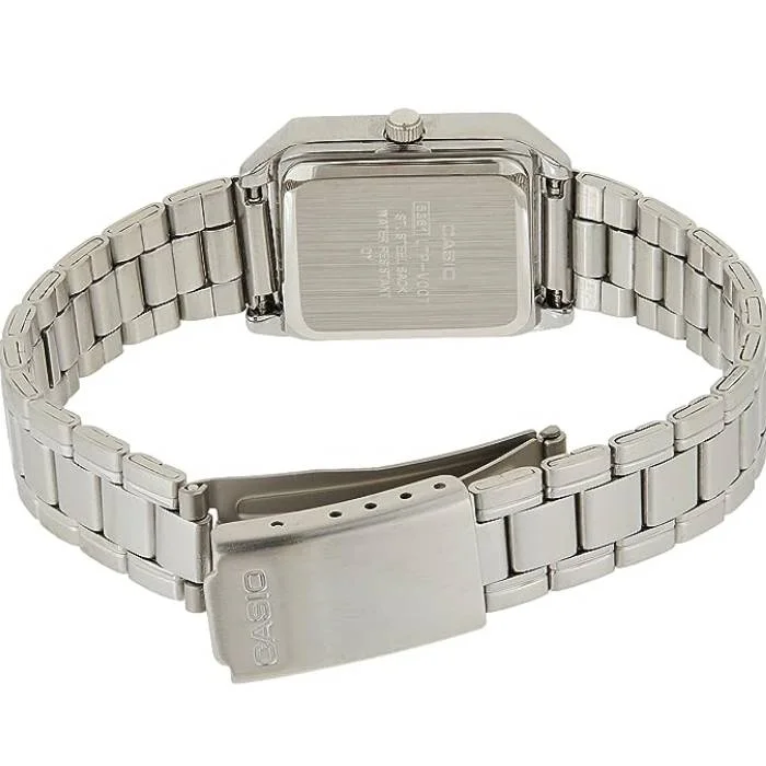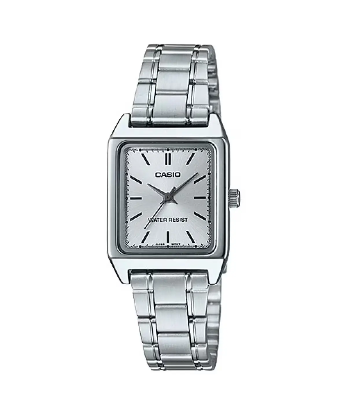 ساعت مچی زنانه CASIO مدل LTP-V007D-7EUDF یک انتخاب شیک، ظریف و کلاسیک برای خانمهایی است که استایل مینیمال و همیشهمد روز را دوست دارند. طراحی قاب مربع/مستطیل با روکش کروم در کنار بند استیل نقرهای جلوهای رسمی، شیک و در عین حال ساده ایجاد کرده که مناسب استایلهای اداری، رسمی و روزمره است.