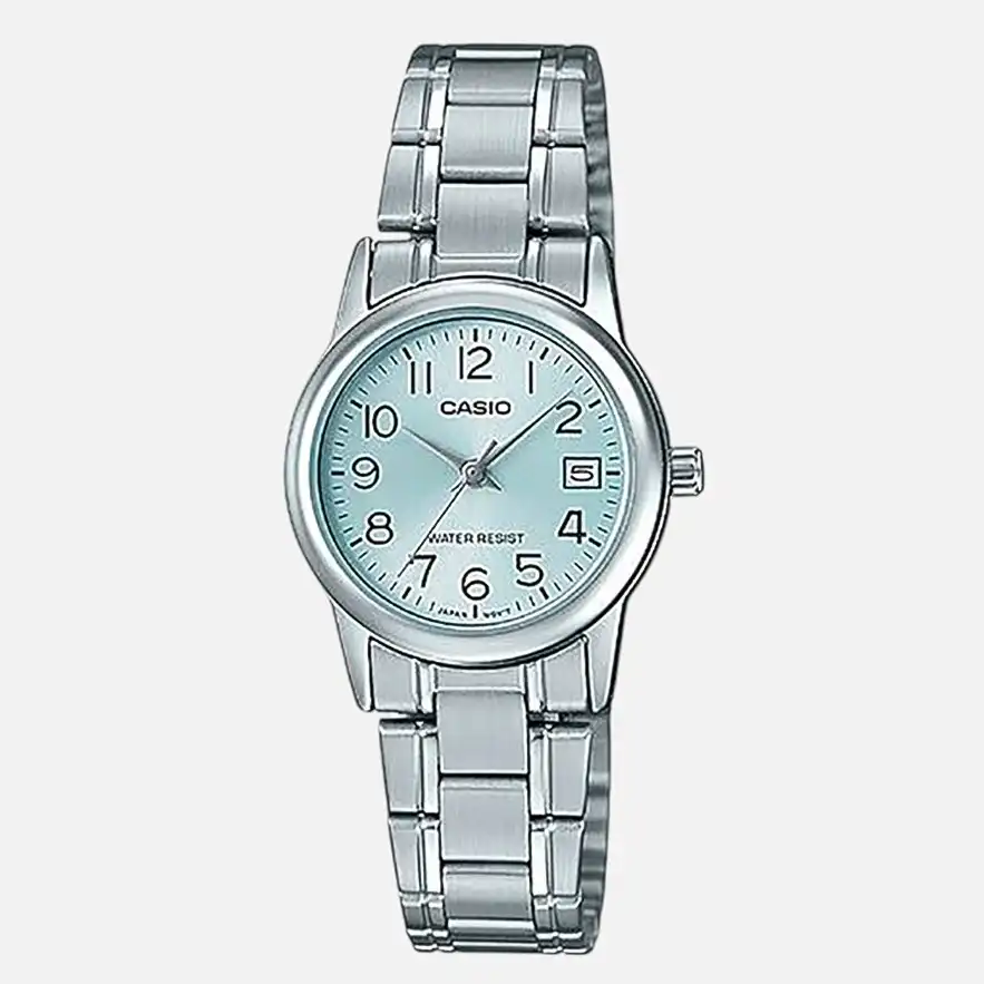 در مجموع، CASIO-LTP-V002D-2B یک ساعت زنانهی اقتصادی و باکیفیت است که با ترکیب رنگ سرمهای و آبی، طراحی مینیمال، بند استیل بادوام و ظاهر کلاسیک انتخابی عالی برای استایل روزمره، اداری و حتی نیمهرسمی محسوب میشود.