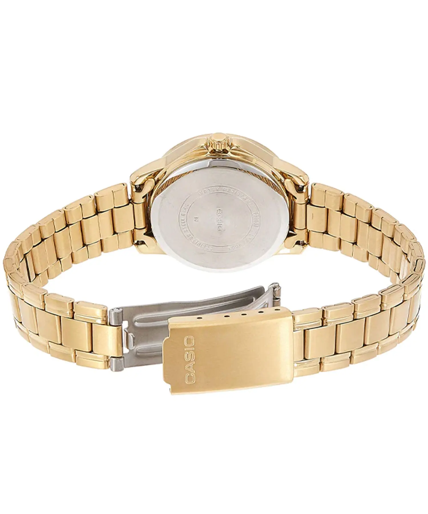 یک ساعت ظریف، شیک و همیشهپرطرفدار از برند معتبر کاسیو است که با طراحی کاملاً کلاسیک و رنگ طلایی لوکس، انتخابی ایدهآل برای استایلهای روزمره و نیمهرسمی بانوان محسوب میشود.
