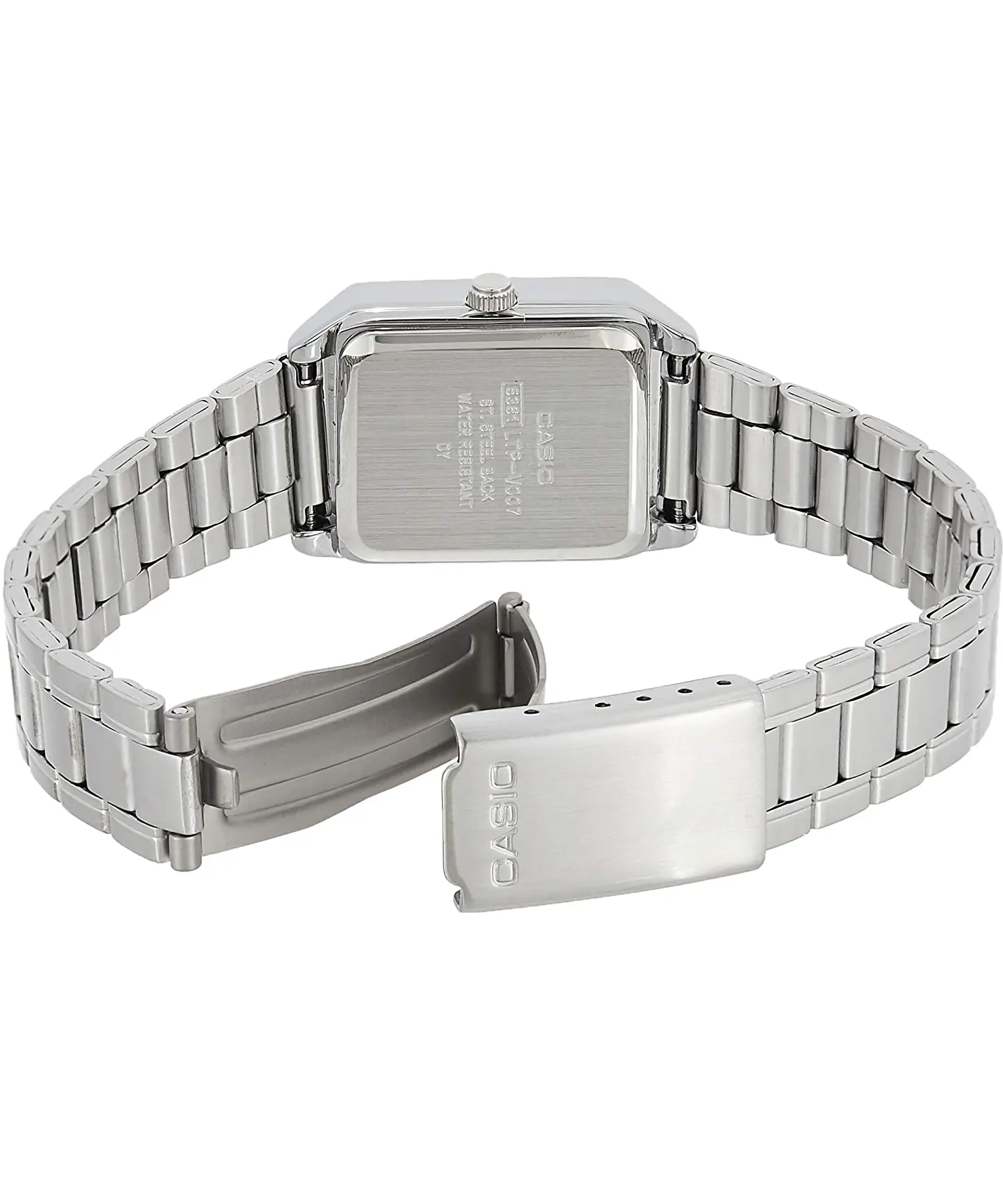 ساعت CASIO LTP-V007D-7B با وزن 51 گرم و ابعاد جمعوجور 22 میلیمتر عرض، 31 میلیمتر طول و 7.5 میلیمتر ضخامت، بسیار ظریف روی دست قرار میگیرد و گزینهای ایدهآل برای خانمهایی است که به ساعتهای سبک، کوچک و خوشفرم علاقه دارند. نوع قفل بند نیز ضامندار است که هم امنیت بیشتری دارد و هم استفاده از آن راحتتر است.
