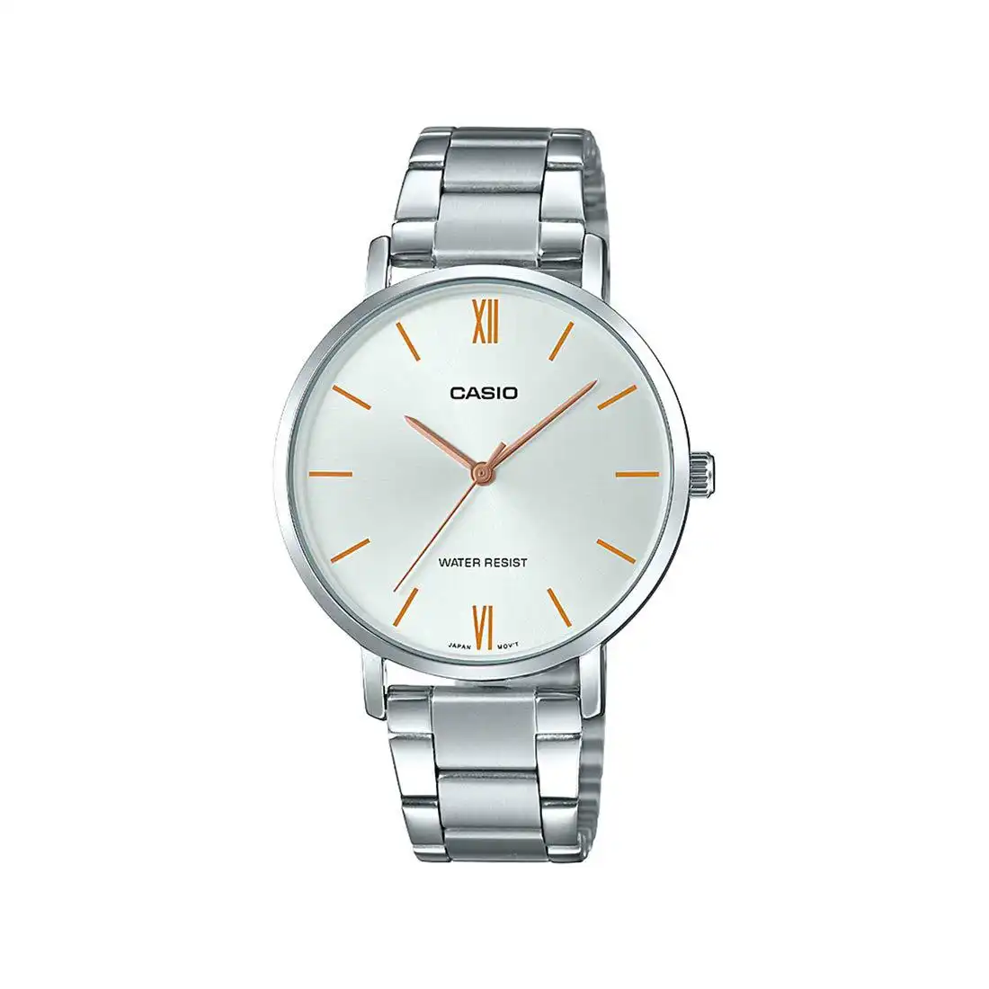 ساعت مچی زنانه CASIO LTP-VT01D-7B یک انتخاب زیبا، ساده و شیک از برند معتبر کاسیو است که با طراحی مینیمال و بدنه تماماستیل، جلوهای ظریف و در عین حال رسمی را به استایل شما میبخشد. این مدل با ترکیب قاب، بند و صفحه نقرهای یکدست، ظاهر بسیار هماهنگ و مدرنی ایجاد میکند که برای استفاده در موقعیتهای رسمی، اداری و حتی روزمره کاملاً مناسب است.