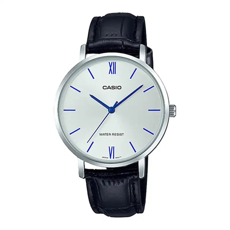 ساعت مچی زنانه CASIO LTP-VT01L-7B1 یکی از مدلهای کلاسیک و شیک برند کاسیو است که با طراحی مینیمال و زنانه، ترکیبی از ظرافت، سبک و کارایی را ارائه میدهد. این ساعت با بدنه و قاب استیل ضدزنگ نقرهای و صفحهای ساده و چشمنواز با طیف رنگی آبی ملایم تا نقرهای، جلوهای ظریف و مدرن ایجاد کرده که بهراحتی با استایلهای اداری، رسمی و روزمره ست میشود. بند چرمی مشکی/دودی تیره با قفل سگکی ساده، علاوه بر راحتی، ظاهری کلاسیک و شیک به ساعت میبخشد.
