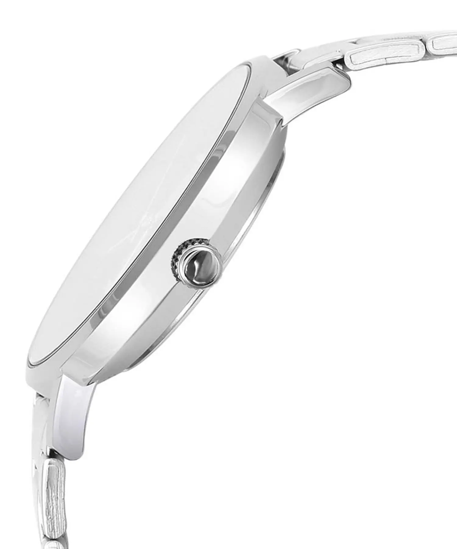 در این مدل، بند و قاب هر دو از استیل ضدزنگ ساخته شدهاند که علاوه بر زیبایی، مقاومت بالایی در برابر خطوخش و فرسودگی ارائه میدهند. صفحه ساعت به رنگ رزگلد طراحی شده که در کنار بدنه نقرهای، ترکیبی چشمنواز و زنانه ایجاد کرده است. شیشه از نوع معدنی است که دوام مطلوبی در برابر ضربه و خراش دارد.