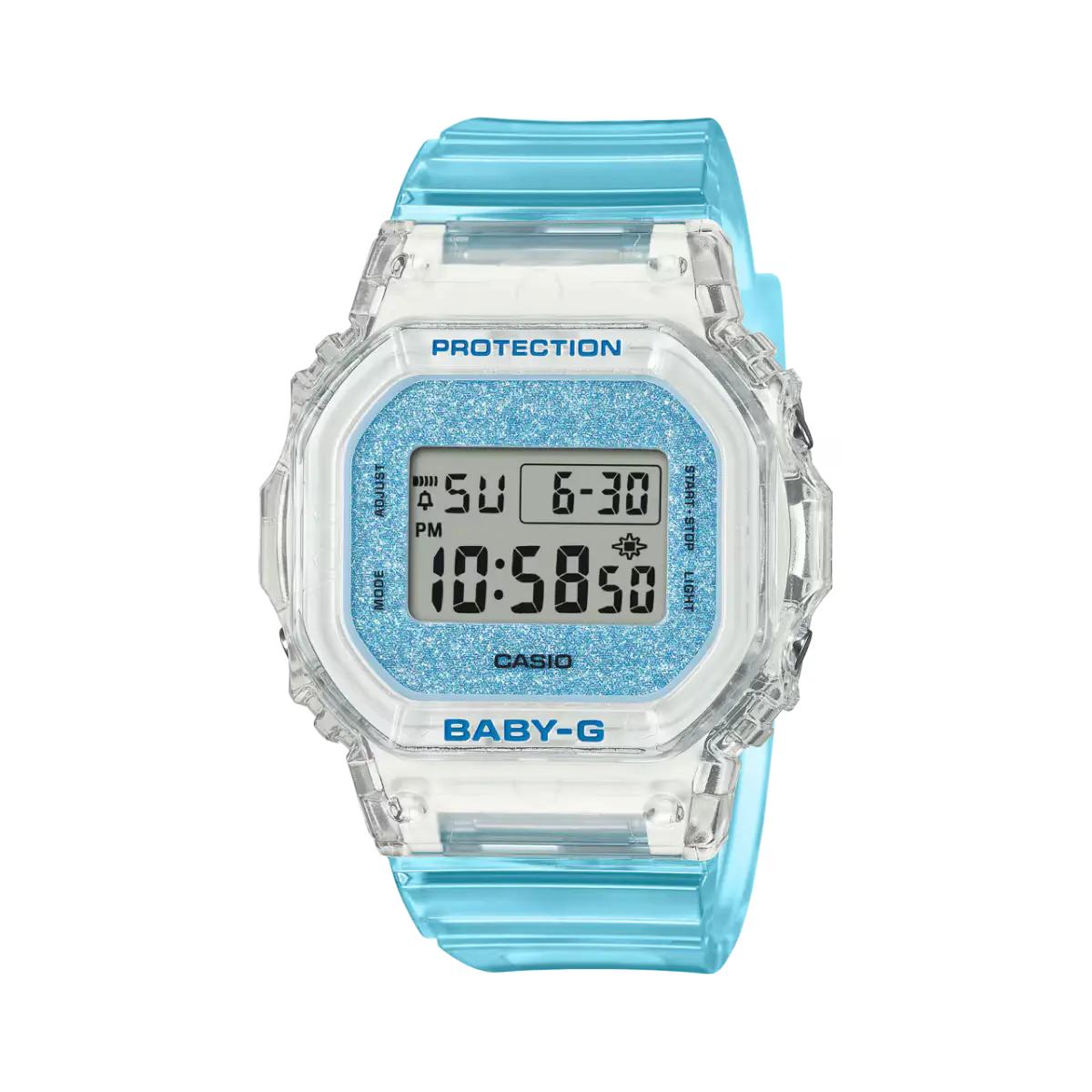 ساعت مچی BABY-G BGD-565GC-2 بهصورت کاملاً دیجیتال طراحی شده و اطلاعات زمان را با وضوح بالا نمایش میدهد. خوانایی مناسب صفحه دیجیتال، استفاده از ساعت را برای کودکان و نوجوانان بسیار ساده کرده است. بند رزینی آبیرنگ با قفل سگکی ساده، علاوه بر هماهنگی رنگی زیبا با صفحه، بهراحتی قابل تنظیم بین ۱۲۵ تا ۱۸۰ میلیمتر بوده و فیت شدن مناسبی روی مچ دست ایجاد میکند.