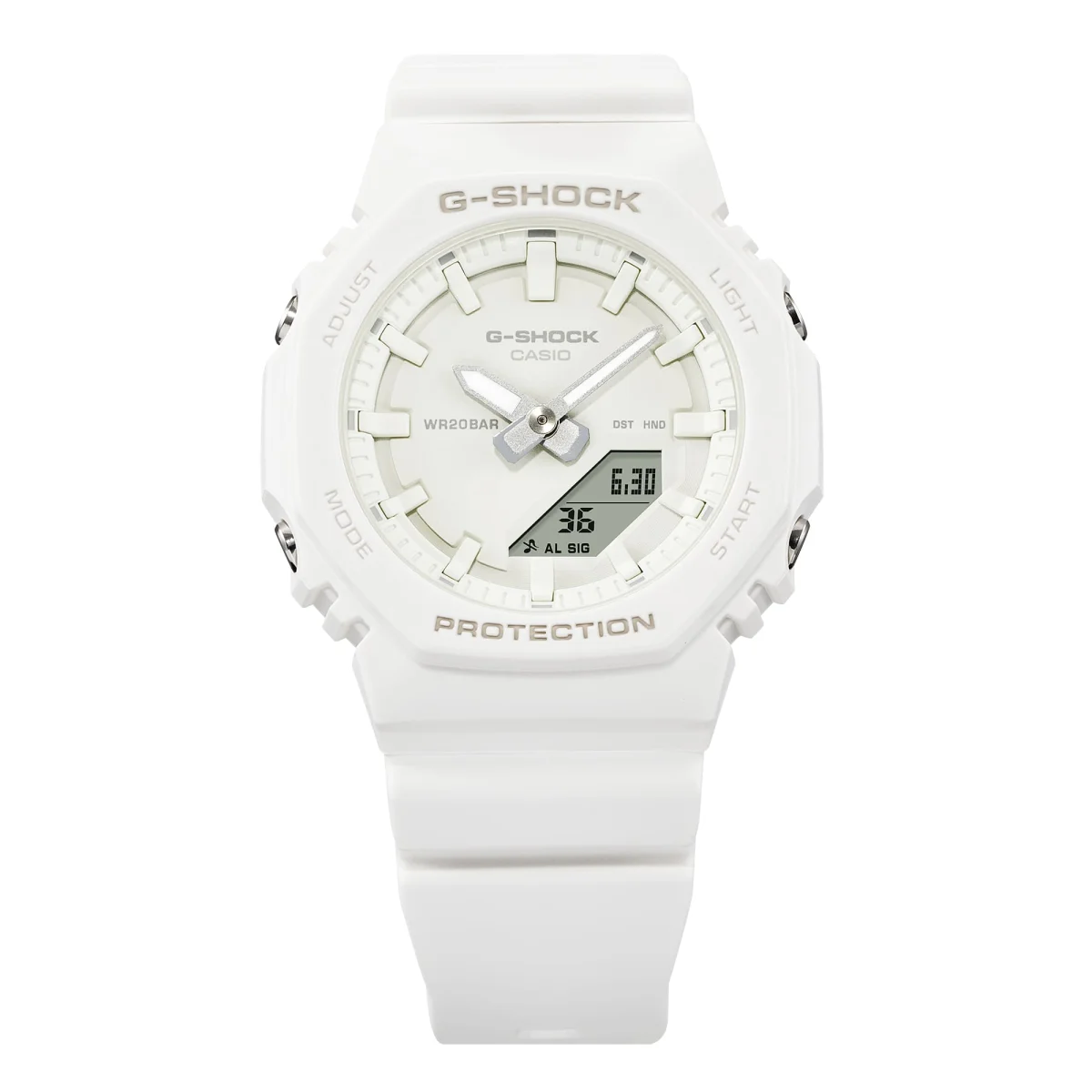 ساعت مچی زنانه کاسیو G-SHOCK مدل GMA-P2100-7ADR با طراحی مینیمال، ظاهر کاملاً سفید و فرم چندضلعی محبوب سری 2100 یکی از انتخابهای مدرن و سبک برای استفاده روزمره است. بدنه و بند از رزین زیستپایه ساخته شدهاند که علاوه بر وزن کم، دوام بالایی داشته و در برابر خطوخش و فرسایش مقاوماند. این مدل با وجود ابعاد جمعوجور، هویت مقاوم G-SHOCK را حفظ کرده و با مقاومت در برابر آب تا 200 متر، کاربری ورزشی و شهری را همزمان ارائه میدهد. صفحه سفید با خوانایی بالا طراحی شده و در کنار شیشه معدنی مقاوم، استفاده طولانیمدت بدون دغدغه را فراهم میکند. وزن سبک، قفل سگکی ساده، مقاومت در برابر ضربه و شوک و کیفیت ساخت استاندارد کاسیو، این مدل را به گزینهای مطمئن برای خانمهایی تبدیل کرده که به دنبال ساعتی بادوام، شیک و مناسب استفاده روزانه هستند.