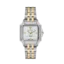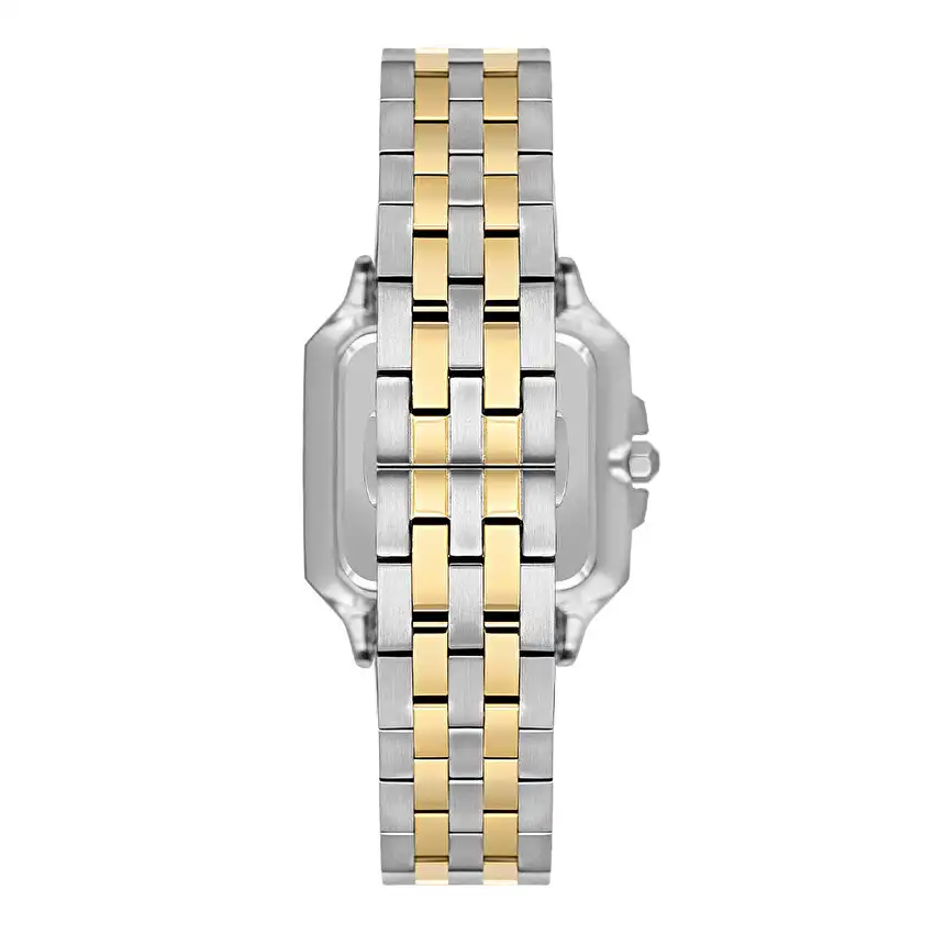 بدنه این ساعت از استیل مقاوم و ضدزنگ ساخته شده که در کنار دوام بالا، جلوهای درخشان و ماندگار دارد. بند استیل با ترکیب رنگ نقرهای و طلایی، زیبایی ساعت را دوچندان کرده و آن را به یک اکسسوری لوکس و چشمنواز تبدیل میکند. استفاده از قفل ضامندار (کلیپسی) نیز علاوه بر امنیت بالا، راحتی مطلوبی را هنگام باز و بسته کردن ساعت فراهم میسازد و بهخوبی روی مچ دست فیکس میشود.