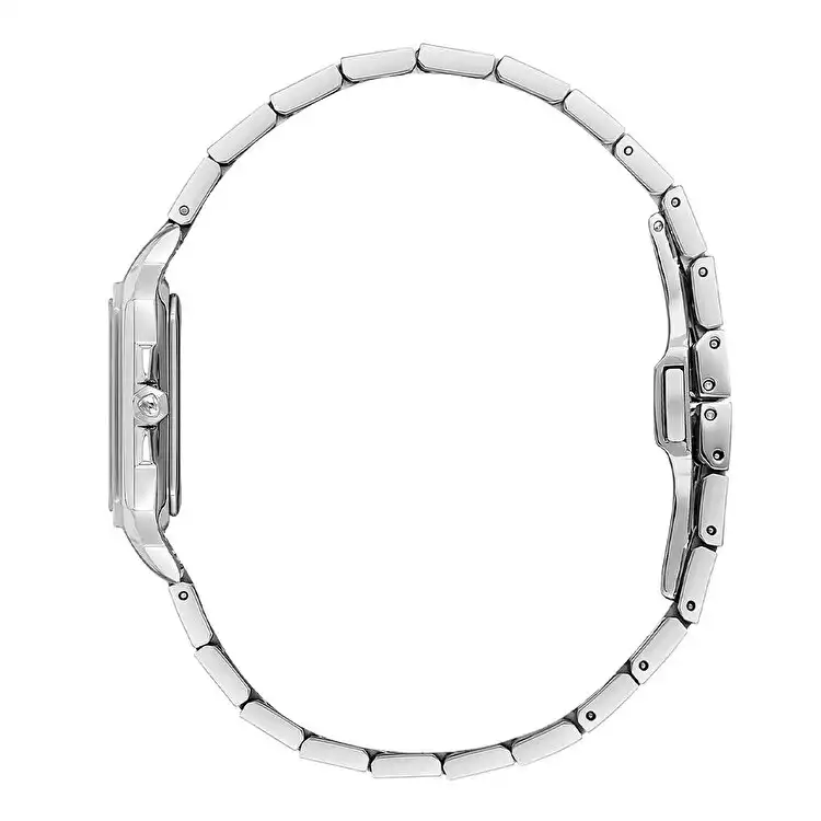 صفحه ساعت با فرم چهارگوش و رنگ سفید طراحی شده که جلوهای کلاسیک و مینیمال به ساعت میبخشد. این طراحی خاص، در کنار عقربههای ظریف، خوانایی بالا و هماهنگی مناسبی با استایلهای رسمی و زنانه ایجاد میکند. شیشه بهکاررفته از جنس یاقوت (Sapphire Crystal) است که مقاومت بسیار بالایی در برابر خط و خش دارد و شفافیت فوقالعادهای را برای نمایش صفحه ساعت فراهم میکند.