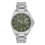 از نظر طراحی، صفحه سبز رنگ این مدل یکی از مهم‌ترین نقاط تمایز آن به شمار می‌رود. رنگ سبز، که امروزه در میان ساعت‌های لوکس بسیار محبوب است، حس اصالت، جسارت و مدرنیته را به‌خوبی منتقل می‌کند. این صفحه با فرم گرد و چیدمان منظم ساب‌دایال‌های کرنوگراف، جلوه‌ای پویا و حرفه‌ای به ساعت بخشیده است. ترکیب صفحه سبز با بدنه و بند استیل نقره‌ای، هارمونی جذابی ایجاد کرده که به‌راحتی با کت‌وشلوار، استایل اداری و حتی پوشش‌های نیمه‌رسمی هماهنگ می‌شود.