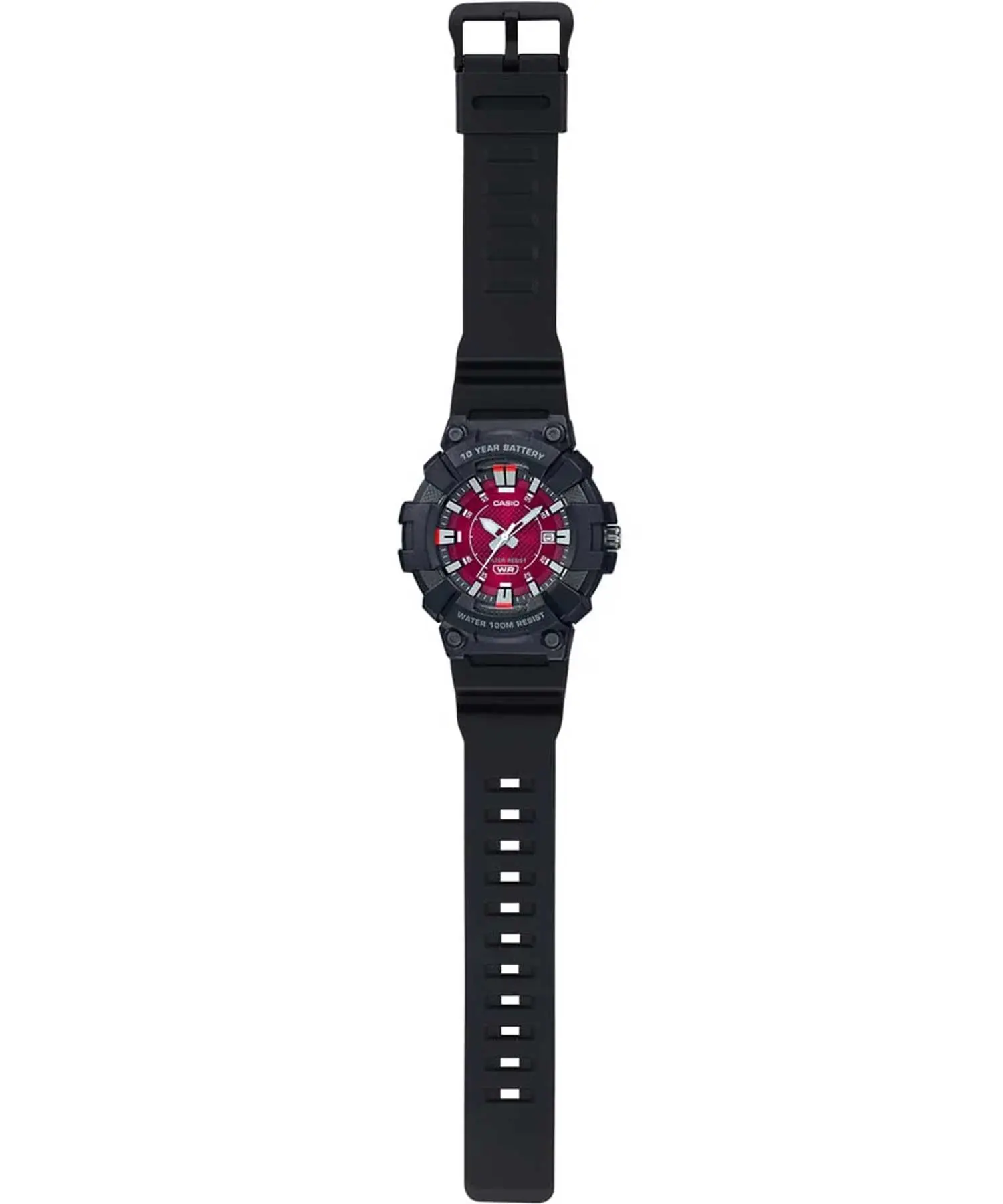 رنگ بدنه و بند مشکی / دودی تیره در کنار صفحه قرمز / زرشکی جلوهای جذاب و چشمگیر ایجاد کرده که توجه هر کسی را جلب میکند. نوع قفل سگکی نیز امکان تنظیم آسان و مطمئن روی مچ را فراهم کرده است.