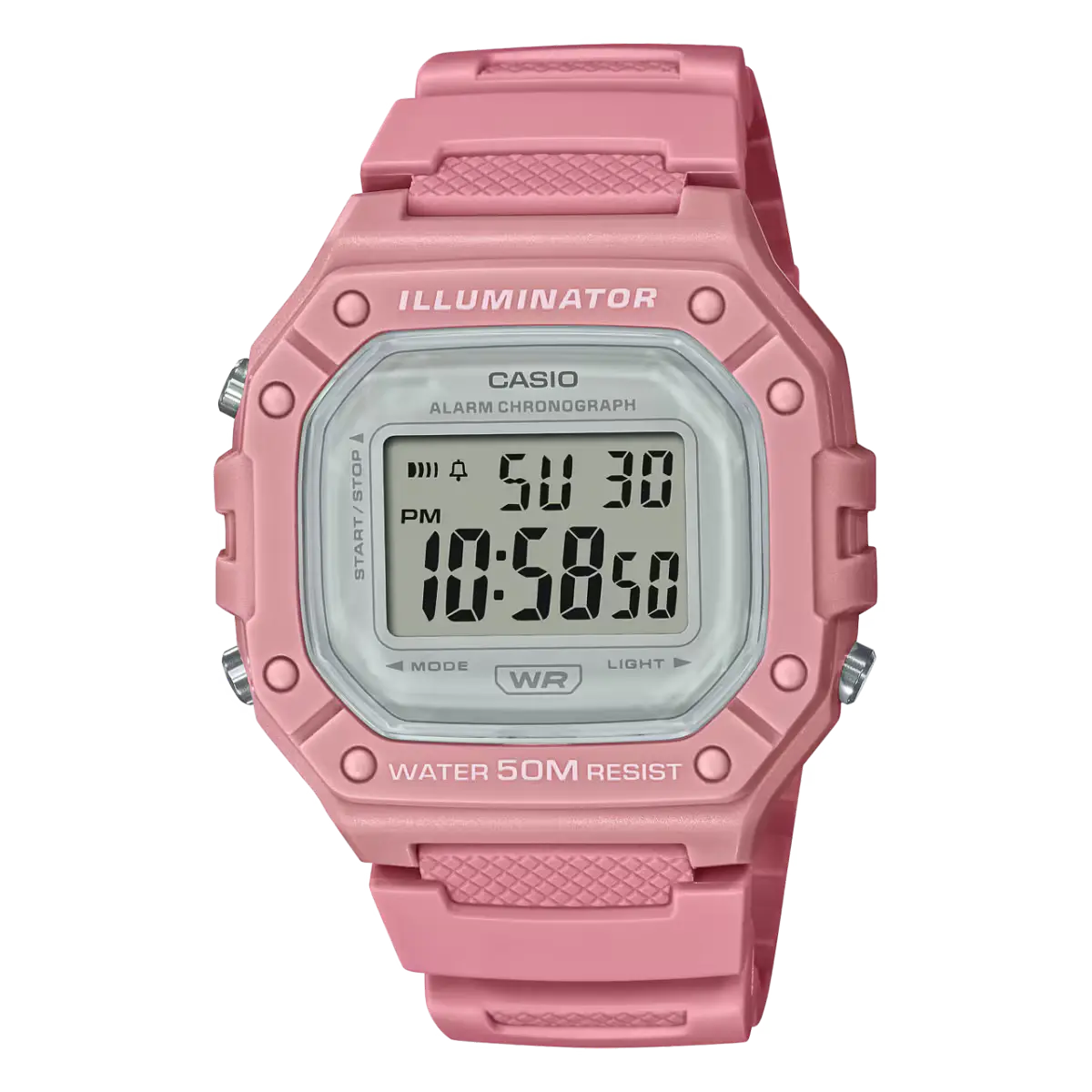 ساعت مچی CASIO W-218HC-4AVDF یک گزینهی دیجیتال، سبک و کاملاً دخترانه است که با رنگ جذاب صورتی / کالباسی جلوهای متفاوت و چشمنواز روی مچ ایجاد میکند. طراحی قاب چندضلعی و هماهنگی کامل رنگ بدنه، قاب و بند باعث شده این مدل استایلی مدرن، اسپرت و در عین حال لطیف داشته باشد.