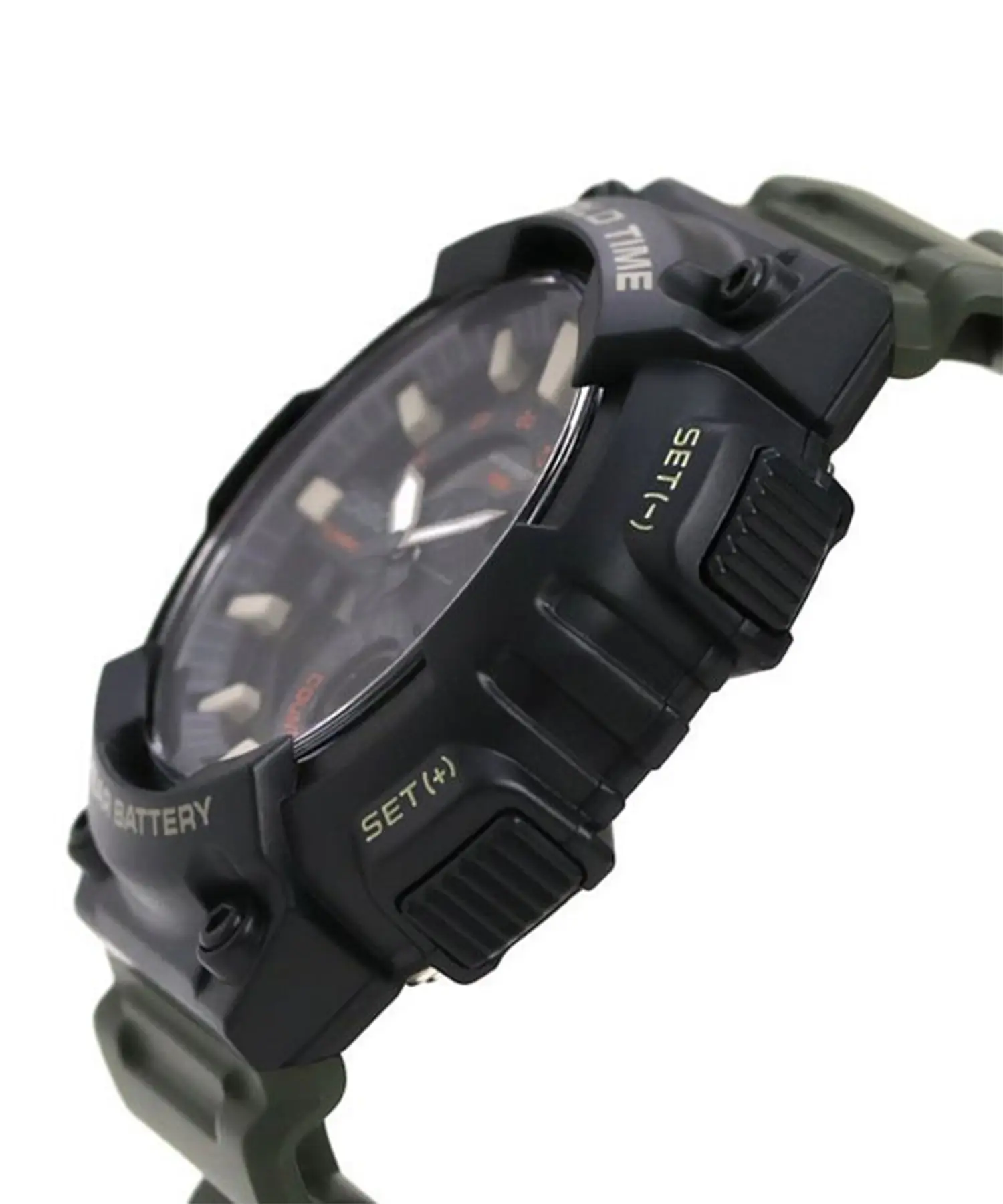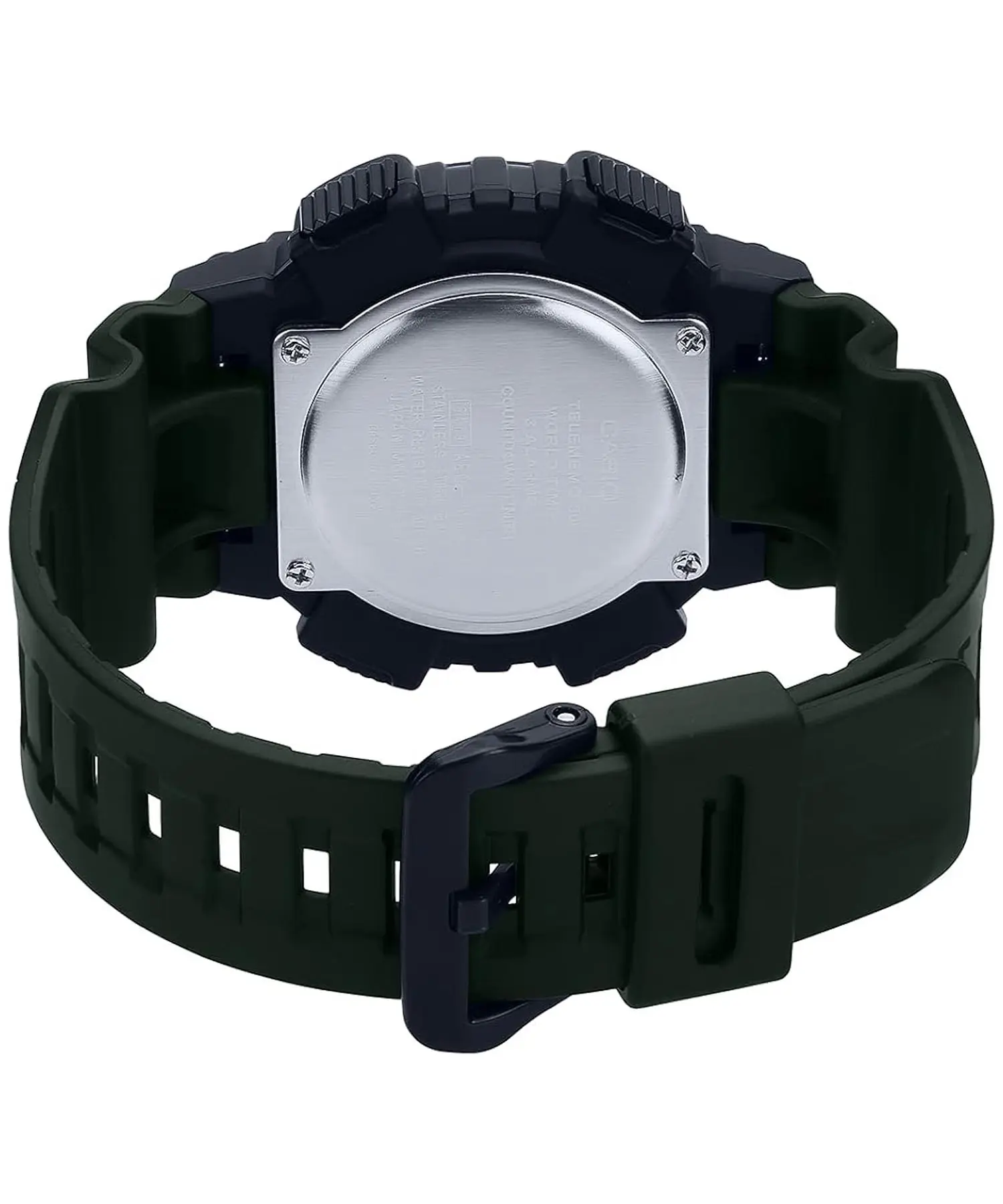 بدنه، قاب و بند این مدل از رزین مقاوم ساخته شده که باعث میشود ساعت در برابر ضربه، خطخوردگی و شرایط سخت کاملاً دوام بیاورد. رنگبندی مشکی / دودی تیره ظاهر ساعت را جدیتر و اسپرتتر کرده و صفحه دیجیتال با پسزمینه تیره خوانایی خوبی در محیطهای مختلف دارد.