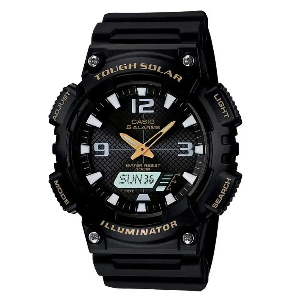 ساعت مچی کاسیو مدل CASIO-AQ-S810W-1B یکی از محصولات حرفهای و بادوام برند معتبر کاسیو است که با طراحی اسپرت، عملکرد چندمنظوره و تکنولوژی پیشرفته باتری خورشیدی (Tough Solar) گزینهای فوقالعاده برای استفاده روزمره، ورزشی و طبیعتگردی محسوب میشود. این ساعت یونیسکس با نمایش ترکیبی آنالوگ و دیجیتال علاوه بر ظاهر جذاب، امکانات کاربردی فراوانی مانند تقویم کامل، کرنومتر، آلارم، هشدار ساعت جهانی و تایمر را در اختیار شما قرار میدهد. بدنه و بند ساخته شده از رزین مقاوم و سبک نه تنها دوام بالایی در برابر ضربه و خط و خش دارد، بلکه در طولانیمدت نیز راحتی قابل توجهی را روی مچ فراهم میکند. رنگ مشکی و دودی تیره در کنار فرم قاب گرد جلوهای حرفهای، شیک و کاملاً اسپرت ایجاد کرده که با انواع استایلها هماهنگ میشود. یکی از ویژگیهای برجسته این مدل، مقاومت در برابر آب تا عمق 100 متر است که آن را مناسب برای شنا، فعالیتهای فضای باز و استفاده در شرایط آبوهوایی مختلف میسازد. طراحی مدرن، وزن سبک 39 گرمی و ابعاد متناسب آن باعث شده این ساعت علاوه بر کاربردی بودن، از نظر زیبایی نیز کاملاً چشمنواز باشد. اگر به دنبال ساعتی هوشمندانه، مقاوم، خوشساخت و مجهز به تکنولوژی شارژ خورشیدی با طول عمر بالا هستید، بدون شک ساعت مچی کاسیو CASIO-AQ-S810W-1B یک انتخاب ایدهآل، اقتصادی و مطمئن به شمار میآید.