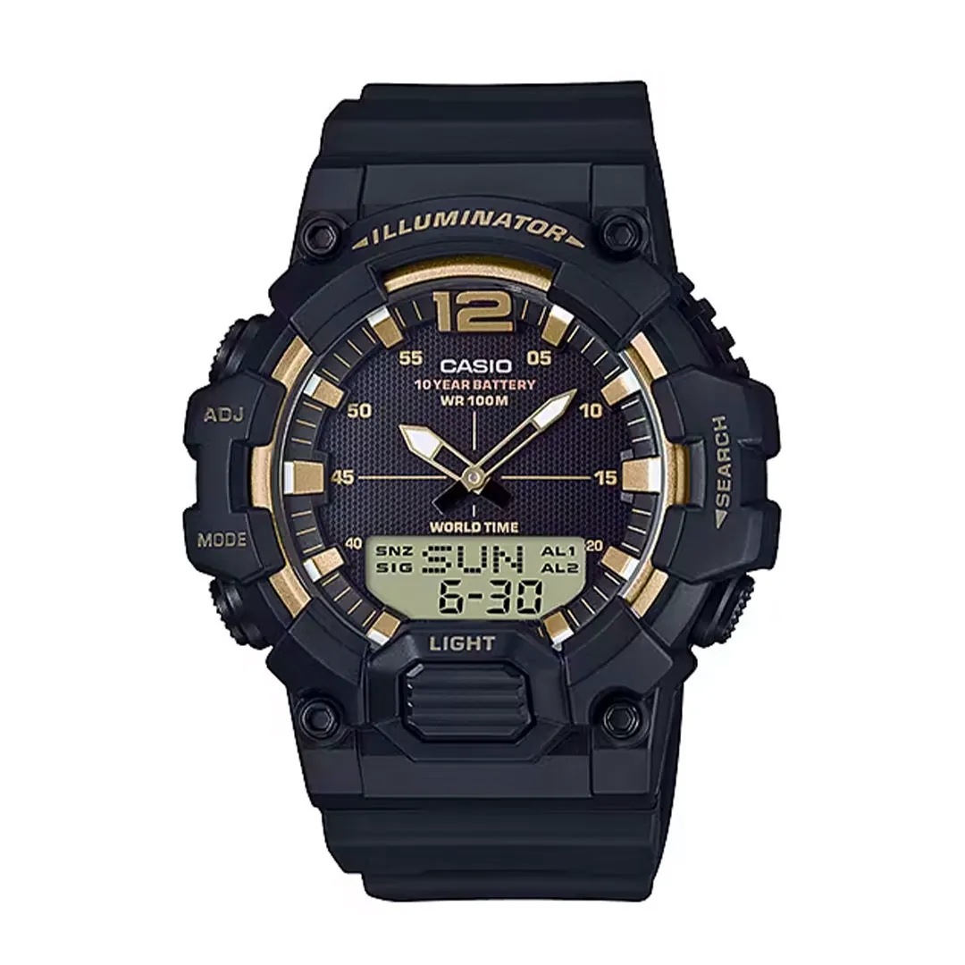 ساعت مچی مردانه کاسیو CASIO HDC-700-9A یکی از مدلهای پرفروش و بادوام سری HDC است که با طراحی اسپرت-کلاسیک و ساختار مقاوم خود، گزینهای عالی برای استفاده روزمره و فعالیتهای سبک ورزشی محسوب میشود. این مدل با بدنه رزینی و رنگبندی مشکی/دودی تیره، ظاهری محکم و مردانه دارد که در کنار جزئیات طلاییرنگ صفحه، جلوهای جذاب و متمایز ایجاد میکند. ترکیب رنگ مشکی با اکسنتهای طلایی به ساعت هویتی مدرن و جسورانه میبخشد و آن را برای کسانی که به دنبال ساعتی خوشاستایل و در عین حال کاربردی هستند، به انتخابی ایدهآل تبدیل میکند.