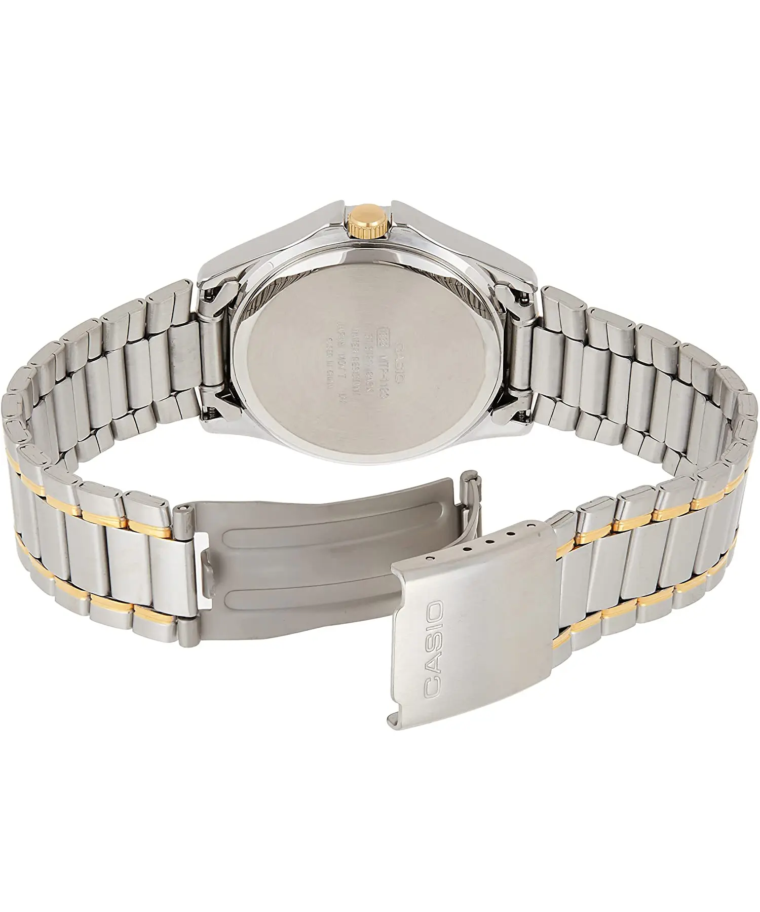 ساعت مچی مردانه کاسیو مدل CASIO-MTP-1183G-7A یکی از گزینههای جذاب و پرطرفدار برند کاسیو است که با طراحی کلاسیک، کیفیت ساخت بالا و ظاهر شیک، انتخابی ایدهآل برای استفاده روزمره و استایلهای رسمی محسوب میشود. این ساعت با ترکیب رنگی طلایی و نقرهای عرضه شده و بدنه آن از جنس آبکاری یونی ساخته شده که علاوه بر جلوه لوکس، مقاومت بالایی در برابر خوردگی و تغییر رنگ دارد. بند از نوع استیل ضدزنگ بوده و با قفل کلیپسی، هم امنیت خوبی فراهم میکند و هم استفاده از آن را بسیار راحت و سریع میسازد.