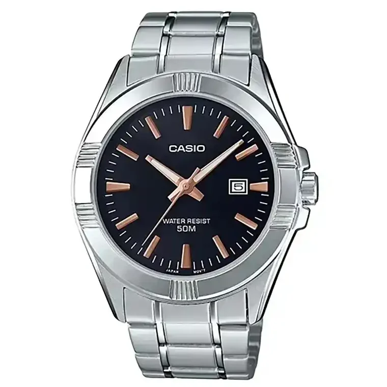 ساعت مچی مردانه کاسیو مدل CASIO-MTP-1308D-1A2V یک گزینه شیک، بادوام و کاربردی است که با طراحی کلاسیک و ترکیب رنگی جذاب، انتخابی عالی برای استفاده روزمره یا استایل رسمی محسوب میشود. این مدل با بدنهی استیل مقاوم ساخته شده و به دلیل استفاده از شیشه معدنی، در برابر خطوخشهای سطحی مقاومت بسیار خوبی دارد.