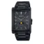 طراحی قاب مستطیلی و مدرن در کنار بند استیل رنگ مشکی/دودی تیره ترکیبی لوکس و رسمی ساخته که آن را مناسب استفاده در محیطهای کاری، جلسات رسمی و استایل کلاسیک میسازد. صفحه ساعت نیز همانند بدنه و بند به رنگ مشکی/دودی تیره طراحی شده که جلوهای هماهنگ، زیبا و خاص ایجاد کرده است.