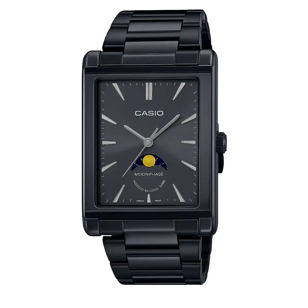ساعت مچی مردانه کاسیو مدل CASIO-MTP-M105B-1AVDF یکی از مدلهای شیک، رسمی و بسیار خاص کاسیو است که با طراحی مستطیلی کلاسیک و تماممشکی، جلوهای متفاوت و جذاب ایجاد کرده است. این ساعت برای آقایانی که به دنبال استایلی موقر، مینیمال و رسمی هستند، گزینهای بسیار ایدهآل محسوب میشود.