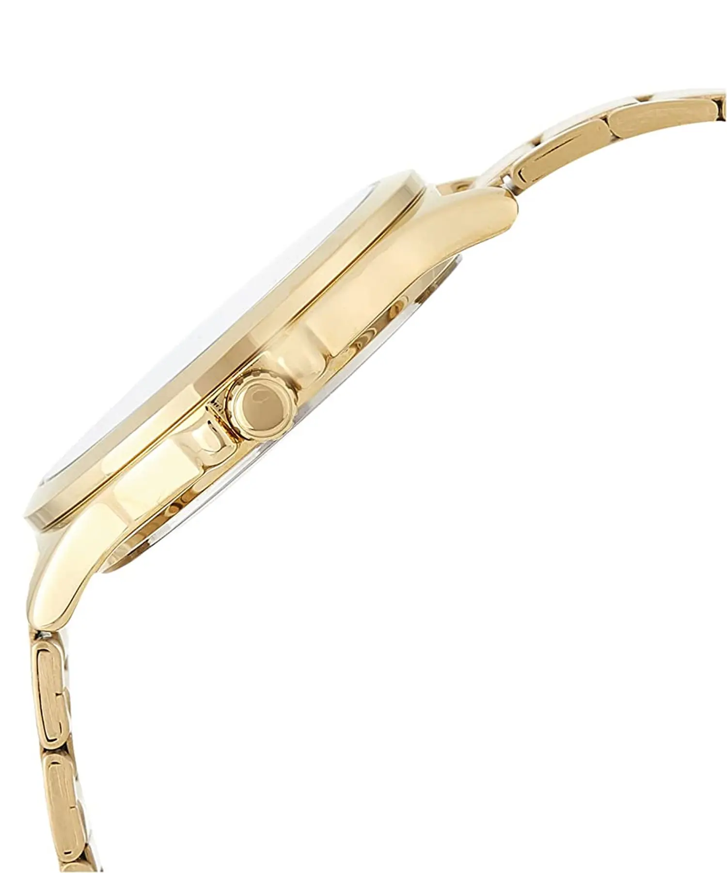 این ساعت با بدنه و بند استیل با روکش طلا ساخته شده و علاوه بر ظاهر جذاب، دوام و کیفیت بسیار مناسبی دارد. شیشهی معدنی نیز مقاومت خوبی در برابر خط و خشهای معمولی ارائه میدهد. قفل ضامندار باعث میشود ساعت بهراحتی بسته شده و روی دست کاملاً ثابت بماند.