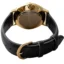 صفحهی مشکی ساعت در کنار نشانگرهای مینیمال و قاب طلایی، ظاهری بسیار شیک و چشمنواز ایجاد کرده است. شیشهی معدنی نیز مقاومت مناسبی در برابر خطوخشهای روزمره دارد. بند چرمی مشکی با قفل سگکی ساده، هم ظاهری کلاسیک دارد و هم روی مچ کاملاً راحت و مطمئن قرار میگیرد.