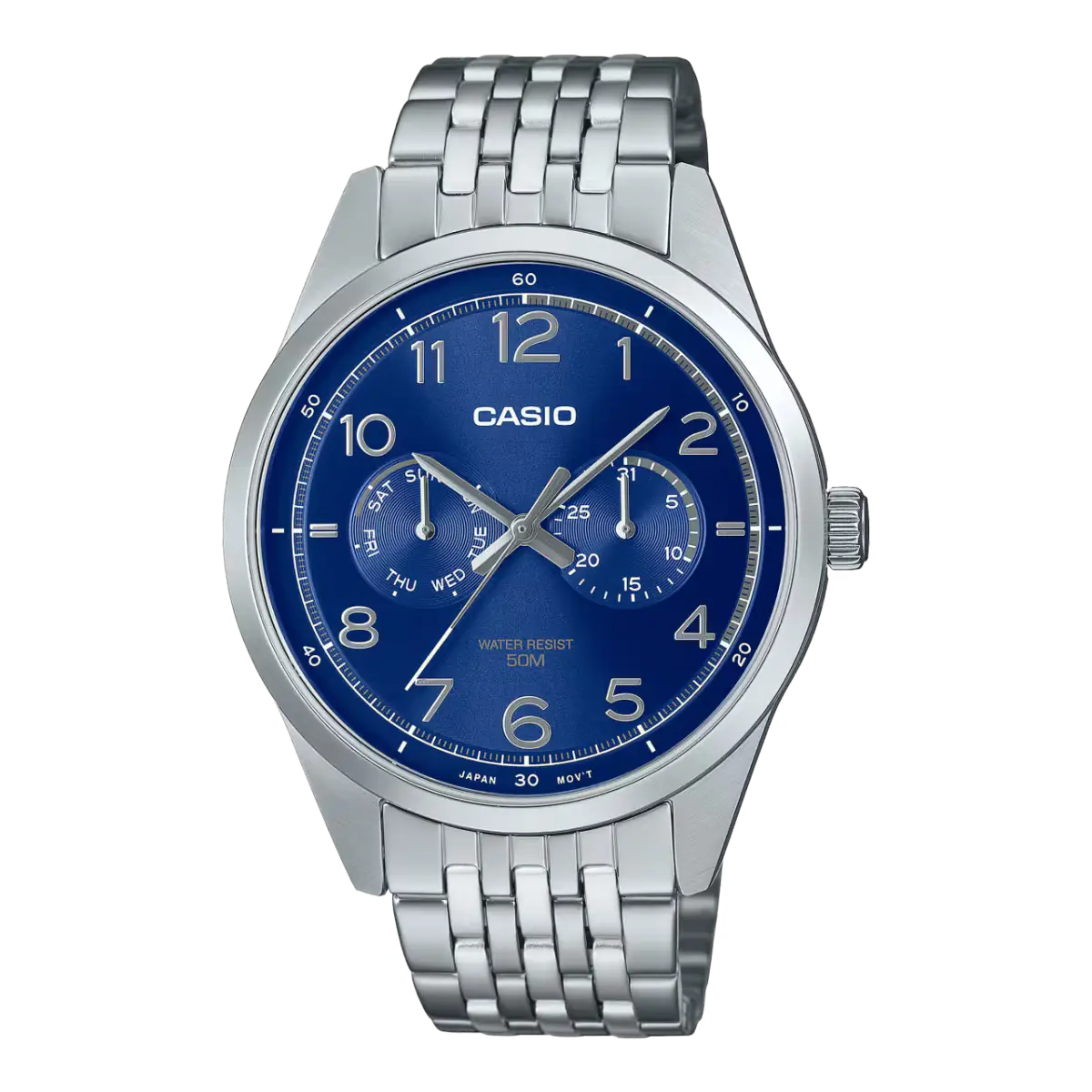 ساعت مچی مردانه کاسیو مدل MTP-E340D-2AVDF یکی از ساعتهای شیک و کاربردی سری کلاسیک کاسیو است که با طراحی مینیمال و جذاب، انتخابی ایدهآل برای استایل روزمره و رسمی محسوب میشود. این مدل با قاب گرد استیل ضدزنگ، بند استیل نقرهای و صفحه آبی چشمنواز، جلوهای مدرن و متفاوت ایجاد میکند.