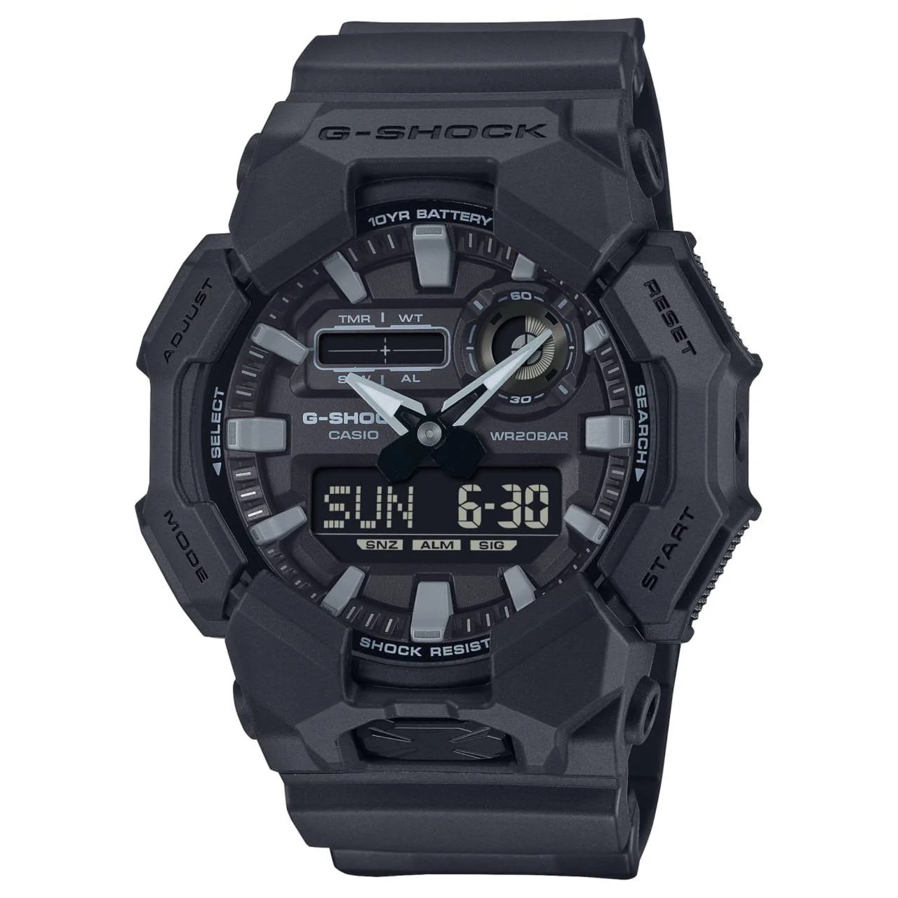 این مدل با مقاومت ۲۰۰ متر در برابر آب برای شنا، فعالیت‌های پرتحرک و شرایط رطوبتی سنگین کاملاً مناسب است. ساختار ضدضربه و ضدشوک مخصوص سری G-SHOCK دوام فوق‌العاده‌ای را تضمین می‌کند. صفحه آنالوگ و دیجیتال نیز خوانایی بهتر و دسترسی سریع‌تر به عملکردهای ساعت را فراهم می‌کند.