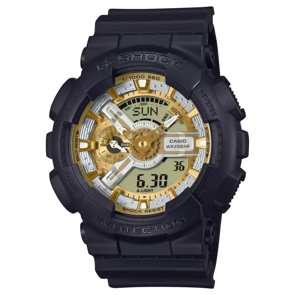 ساعت مچی مردانه کاسیو G-SHOCK مدل GA-110CD-1A9DR یک گزینه مقاوم، اسپرت و چشمنواز است که با ترکیب طراحی آنالوگ–دیجیتال و رنگبندی خاص طلایی/کهربایی جلوهای متفاوت ایجاد میکند. این مدل با بدنه و بندی از رزین مقاوم ساخته شده و همانند سایر محصولات جیشاک، در برابر ضربه، شوک و میدان مغناطیسی مقاومت بالایی دارد. همچنین با مقاومت ۲۰۰ متری در برابر آب، انتخابی ایدهآل برای استفاده روزمره، فعالیتهای ورزشی و شرایط سخت محیطی است.