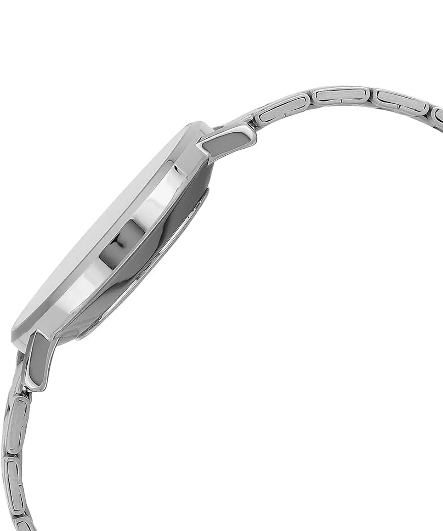 بدنه و بند این ساعت از استیل ضدزنگ ساخته شدهاند که علاوه بر ظاهر براق و شیک، دوام بالا و مقاومت خوبی در برابر خوردگی و خطوخشهای روزمره دارند. صفحهی سفید با طراحی ساده و خوانا، جلوهای تمیز و مدرن ایجاد کرده و ضخامت ۸.۲ میلیمتری ساعت باعث میشود روی دست بسیار سبک و راحت باشد. وزن آن فقط ۸۸ گرم است و همین موضوع استفادهی طولانیمدت را کاملاً لذتبخش میکند.