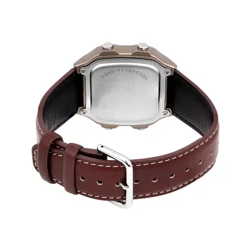 بند این مدل از چرم باکیفیت به رنگ قهوهای/مسی ساخته شده که حس کلاسیک و شیکتری به ساعت میبخشد و با قفل سگکی ساده، استفادهای آسان و ایمن را تضمین میکند. شیشه رزینی نیز ضمن سبک بودن، مقاومت مناسبی در برابر ضربات روزمره دارد.