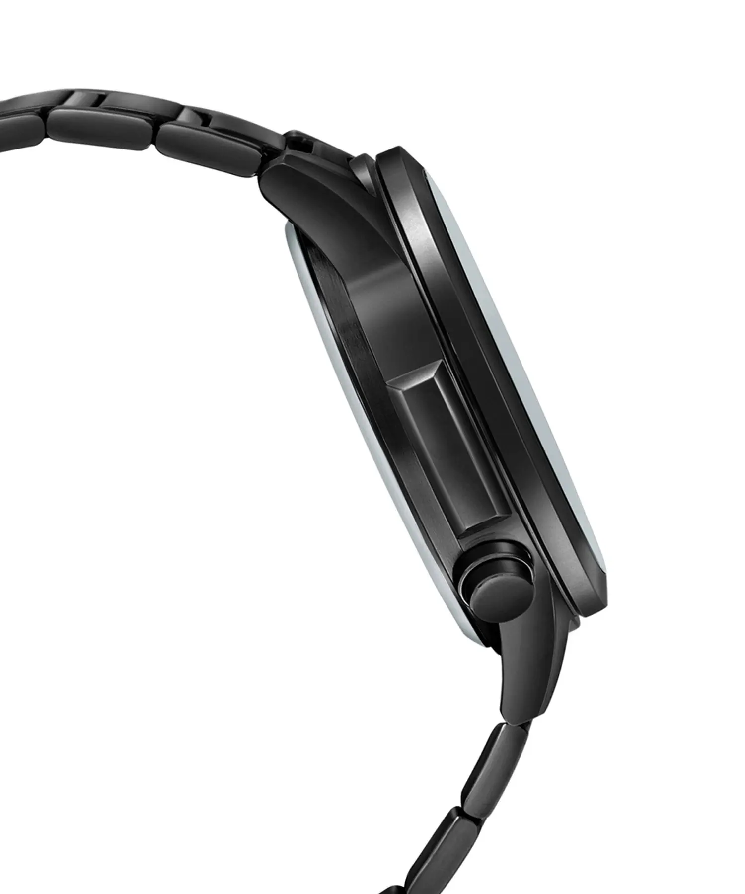 ابعاد 52.3 × 48.7 × 12.9 میلیمتر حس قدرت و استحکام را روی دست منتقل میکند، در حالی که وزن 148 گرم باعث میشود ساعت محکم اما راحت باشد. شیشه معدنی مقاوم از صفحه مشکی/دودی آن محافظت کرده و قفل کلیپسی ضامندار امنیت و راحتی بیشتری فراهم میکند. بند استیل نیز با قابلیت تنظیم بین 150 تا 205 میلیمتر برای بیشتر سایزهای دست مناسب است.
