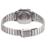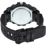 بدنه و بند استیل با پوشش مشکی / دودی تیره جلوهای لوکس و مقاوم ایجاد کردهاند و صفحه آنالوگ–دیجیتال مشکی، خوانایی عالی و ظاهر حرفهای به ساعت میبخشد. استفاده از استیل ضدزنگ در قاب و بند، علاوهبر استحکام، در برابر خطوخش مقاومت بالایی دارد. این مدل دارای قفل کلیپسی ضامندار است که امنیت و راحتی بیشتری هنگام استفاده فراهم میکند.