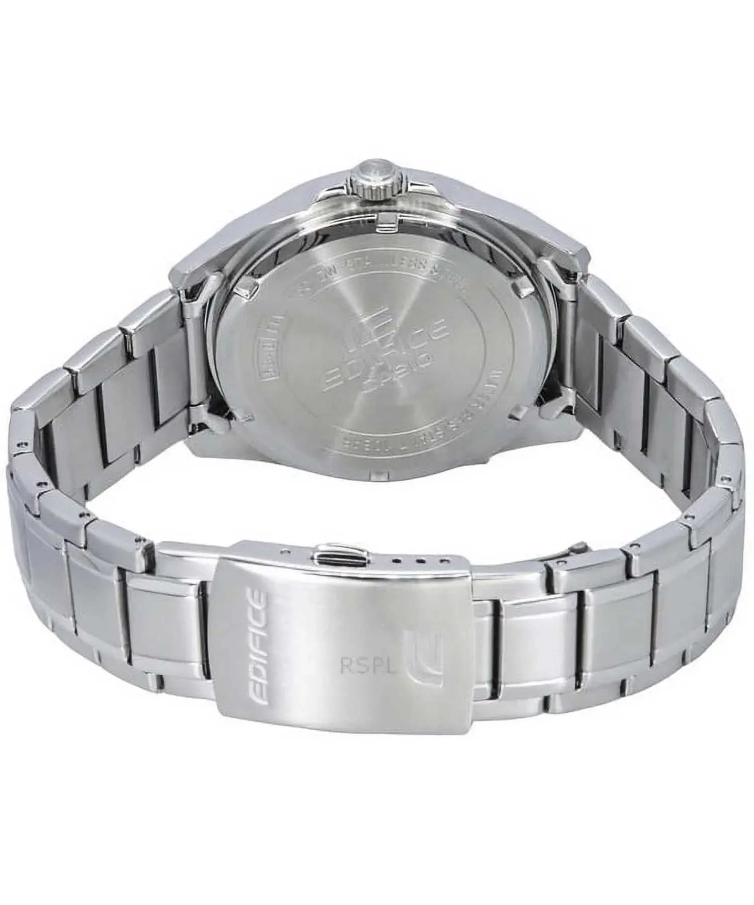 ساعت مچی مردانه کاسیو EDIFICE مدل CASIO-EFV-150D-1AVUDF یک انتخاب شیک، سبک و مقاوم برای آقایانی است که به دنبال یک ساعت روزمره و رسمی با طراحی ظریف هستند. این مدل با ضخامت فقط 9 میلیمتر جزو ساعتهای باریک EDIFICE محسوب میشود و روی مچ بسیار راحت و خوشفرم قرار میگیرد. بدنه و بند کاملاً از استیل ضدزنگ ساخته شده و ترکیب آن با صفحه مشکی، جلوهای مدرن و حرفهای ایجاد میکند.