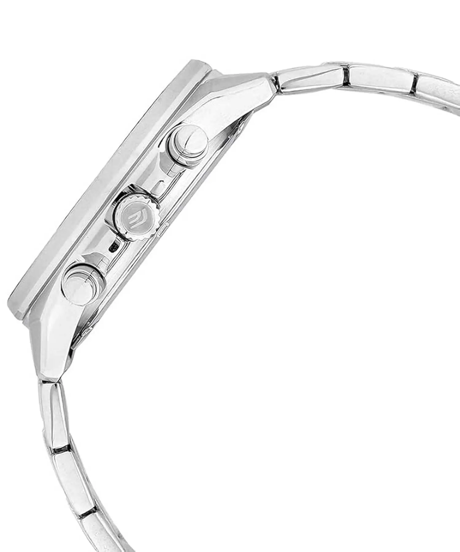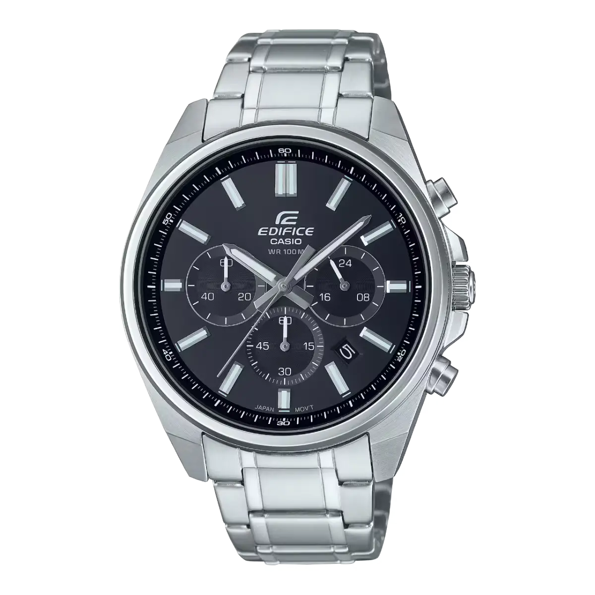 ساعت مچی EDIFICE کاسیو مدل CASIO-EFV-650D-1AVUDF یکی از مدلهای شیک و پرطرفدار این برند ژاپنی است که با طراحی کلاسیک-اسپرت و کیفیت ساخت بالا، پاسخگوی نیاز افرادی با سلیقه مینیمال و حرفهای خواهد بود. این ساعت با وجود آنکه در دسته ساعت مچی مردانه قرار میگیرد، بهدلیل طراحی متعادل و فرم استاندارد، برای آقایان و خانمها نیز کاملاً قابل استفاده است و میتواند انتخابی هوشمندانه برای استایلهای رسمی، اداری و روزمره باشد. ترکیب بدنه و بند نقرهای با صفحه مشکی / دودی تیره ظاهری قدرتمند، رسمی و همیشهمد را ایجاد کرده که هرگز از مد نمیافتد.