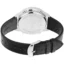 بند چرمی مشکی/دودی تیره، تضاد ظریفی با بدنه استیل ایجاد کرده و حس اصالت و وقار را به استایل ساعت می‌افزاید. این بند با قفل کلیپسی ضامن‌دار، امنیت بالا و استفاده آسان را فراهم کرده و قابلیت تنظیم برای سایز مچ 175 تا 215 میلی‌متر را دارد. وزن سبک 78 گرمی ساعت، در کنار طراحی ارگونومیک، راحتی قابل توجهی را در استفاده طولانی‌مدت ایجاد می‌کند.