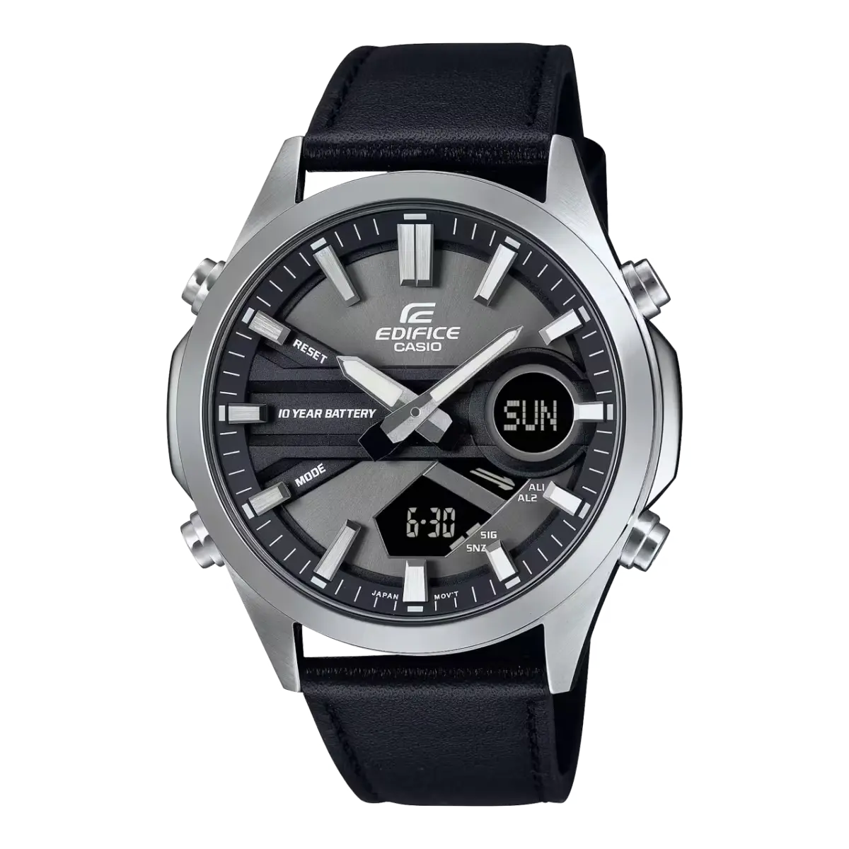 یکی از نقاط قوت اصلی این مدل، طراحی آنالوگ-دیجیتال آن است که امکان نمایش هم‌زمان اطلاعات کلاسیک و دیجیتال را فراهم می‌کند. این ویژگی، EFV-C120L-8ADF را به ساعتی کاربردی برای کاربرانی تبدیل می‌کند که علاوه بر ظاهر رسمی، به قابلیت‌های چندمنظوره نیز اهمیت می‌دهند. منبع انرژی ساعت باتری معمولی است که دقت مناسب و نگهداری آسانی را تضمین می‌کند.