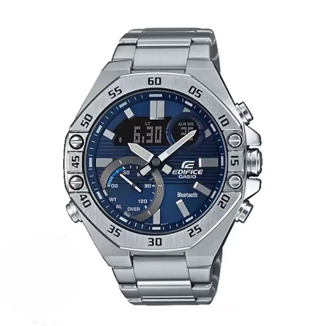 ساعت مچی مردانه کاسیو سری EDIFICE مدل ECB-10D-2A یکی از ساعتهای مدرن و حرفهای برند معتبر کاسیو است که با طراحی لوکس، بدنهی استیل و امکانات هوشمند، انتخابی عالی برای آقایان خوشسلیقه محسوب میشود. سری EDIFICE کاسیو همیشه بهعنوان ترکیبی از فناوری پیشرفته و طراحی شیک شناخته میشود و این مدل نیز بهخوبی این فلسفه را به نمایش میگذارد. ظاهر این ساعت با قاب و بند استیل ضد زنگ و صفحهی آبی متالیک، جلوهای جذاب و متمایز دارد که به راحتی با استایل رسمی، نیمهرسمی و حتی روزمره ست میشود.