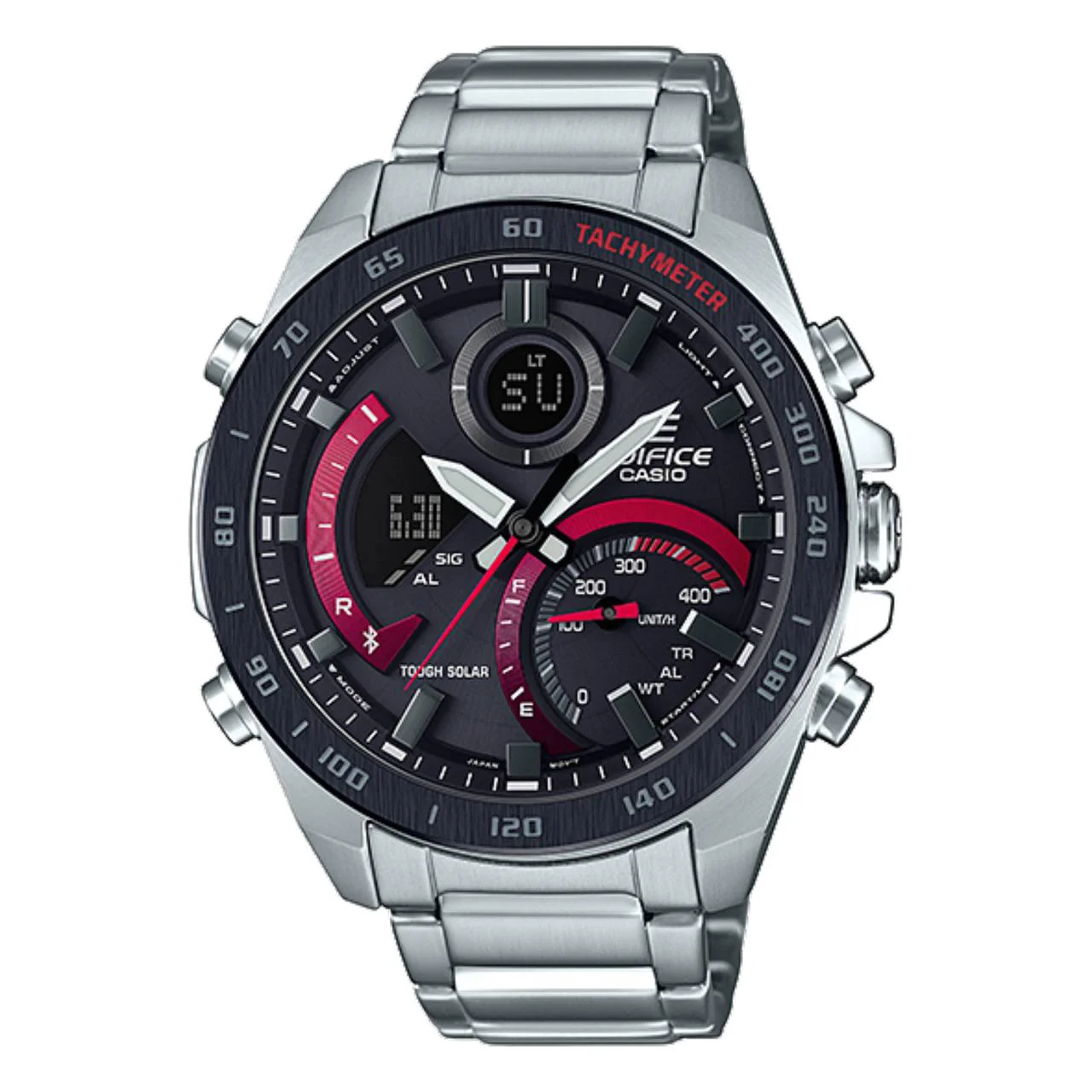 ساعت مچی مردانه کاسیو مدل CASIO-ECB-900DB-1A ترکیبی بینظیر از طراحی لوکس و فناوری پیشرفته است که برای آقایانی که به دنبال ساعتی مقاوم، شیک و کارآمد هستند، انتخاب ایدهآلی محسوب میشود. این ساعت دارای بدنه و قاب استیل ضدزنگ و بند استیل با کیفیت بالا است که علاوه بر مقاومت عالی در برابر ضربه و خوردگی، ظاهری حرفهای و چشمنواز ارائه میدهد. طراحی آنالوگ و دیجیتال آن امکان دسترسی سریع به زمان و ویژگیهای متعدد ساعت را فراهم میکند و صفحه ساعت با ترکیب رنگهای مشکی، دودی تیره و جزئیات قرمز یا زرشکی جلوهای جذاب و مدرن به ساعت بخشیده است.