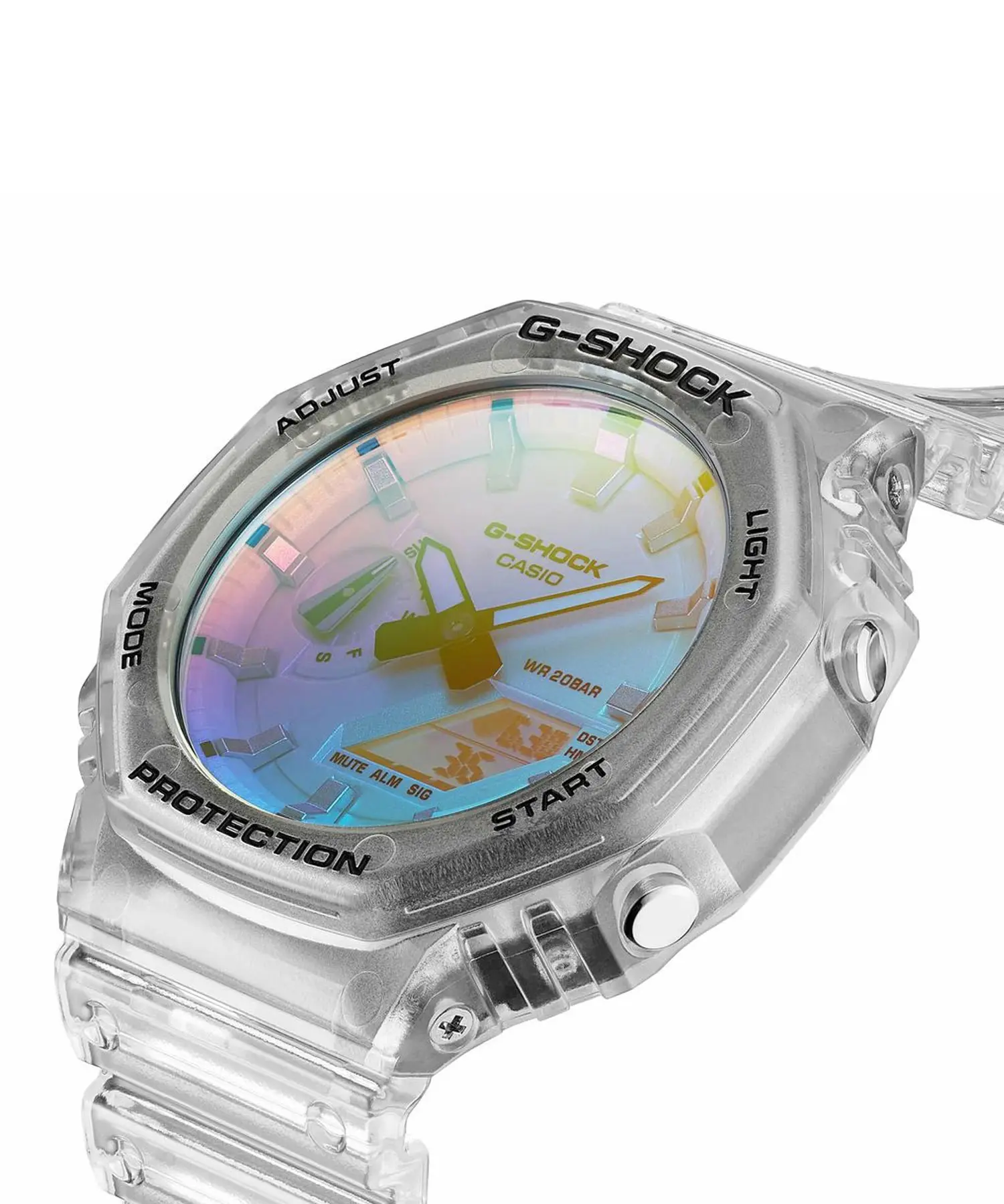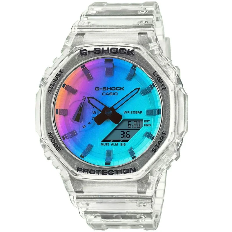 ساعت مچی مردانه G-SHOCK کاسیو مدل GA-2100SRS-7ADR یکی از نسخههای خاص و چشمگیر سری محبوب GA-2100 است که با طراحی شفاف، مدرن و الهامگرفته از استایلهای خیابانی عرضه میشود