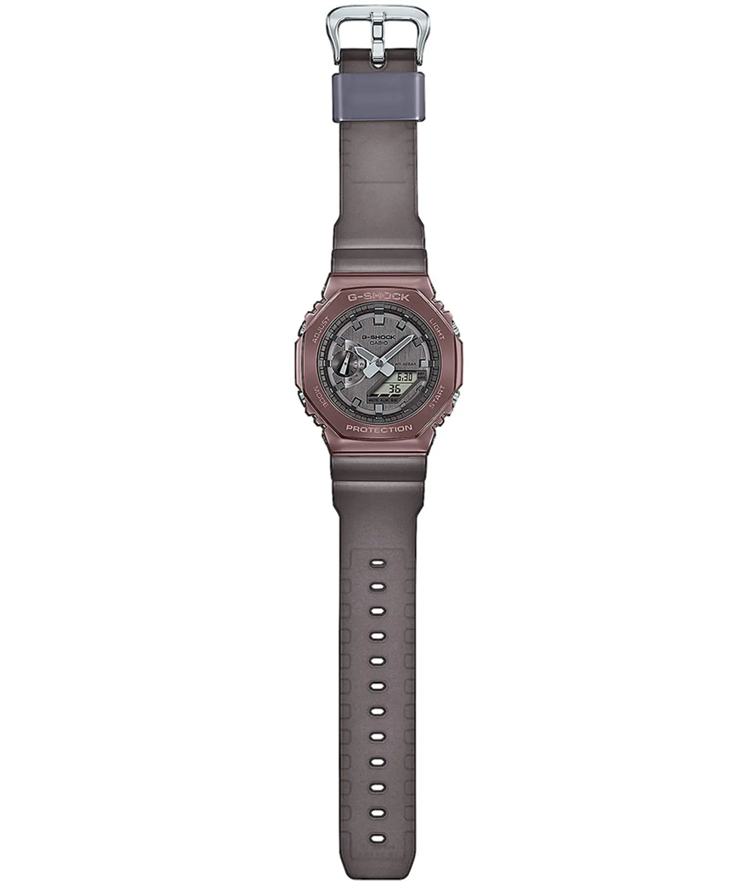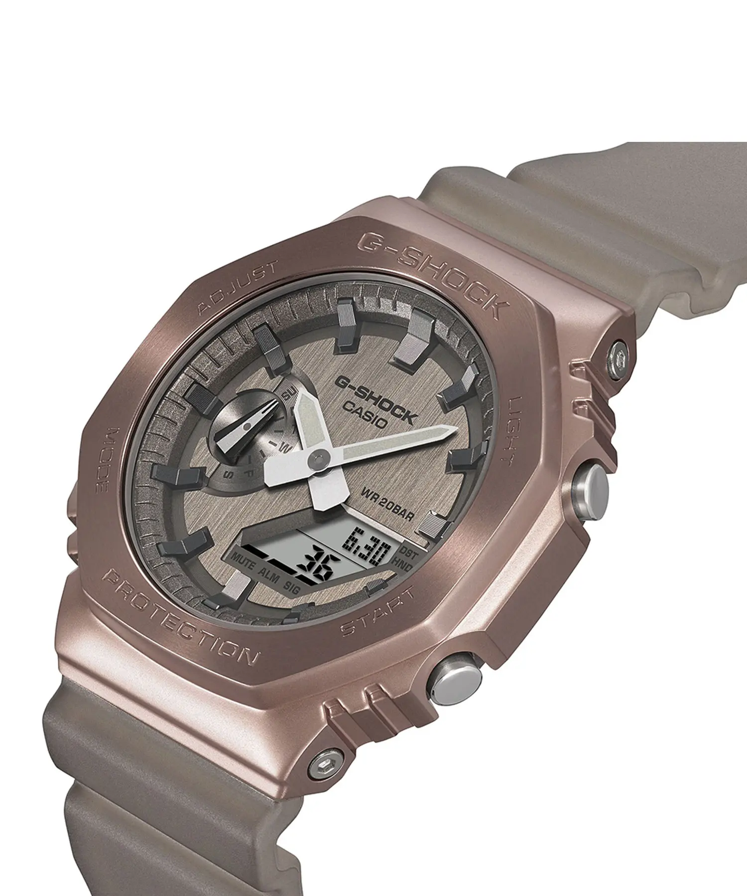ساعت مچی G-SHOCK مدل CASIO-GM-2100MF-5ADR یکی از مدلهای خاص و چشمگیر سری 2100 است که با ترکیب رنگی قهوهای / مسی و طراحی چندضلعی خود، ظاهر متفاوت و جذابی ارائه میدهد. این ساعت مخصوص آقایانی است که به دنبال یک انتخاب مقاوم، شیک و مناسب استفاده روزمره یا استایل اسپرت هستند. ساختار مقاوم آن از رزین و استیل ضدزنگ تشکیل شده و در برابر ضربه و شوک مقاومت بالایی دارد.