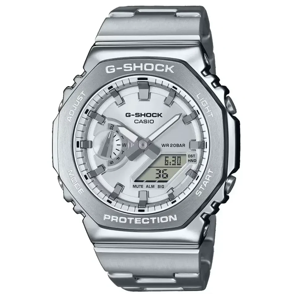 ساعت مچی G-SHOCK کاسیو مدل CASIO-GM-2110D-7ADR یکی از شیکترین و متفاوتترین مدلهای سری فلزی جیشاک است که با طراحی یونیسکس، برای خانمها و آقایان انتخابی ایدهآل محسوب میشود. این مدل با ترکیب جذاب قاب استیل ضدزنگ، بدنه نقرهای و صفحه نقرهای هماهنگ، ظاهری مدرن، مینیمال و فوقالعاده لوکس ایجاد کرده است.