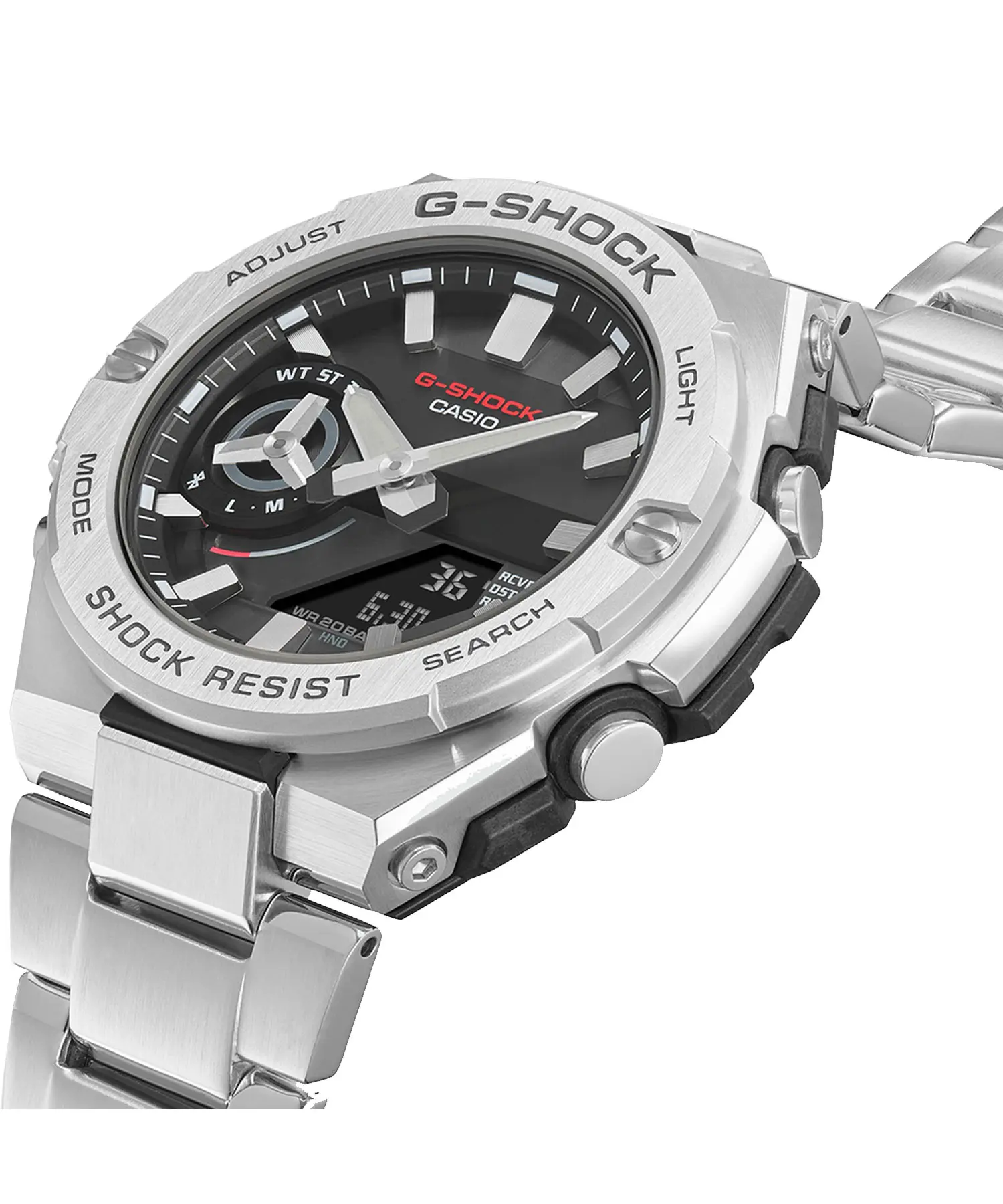ساعت مچی مردانه G-Shock مدل CASIO GST-B500D-1ADR یکی از شیکترین و مقاومترین مدلهای سری G-STEEL است؛ ترکیبی حرفهای از طراحی لوکس فلزی و مقاومت افسانهای جیشاک. این مدل با بدنه و قاب استیل ضدزنگ و رزین ساخته شده و در حالی که ظاهری کاملاً پریمیوم و مردانه دارد، همچنان سبک و راحت روی دست قرار میگیرد.