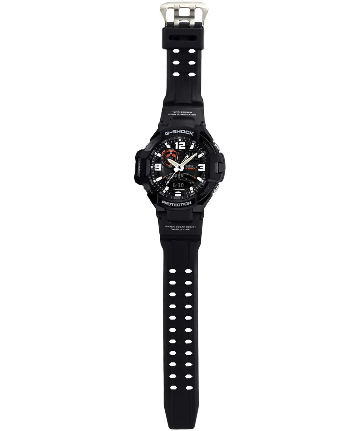 ساعت مچی مردانه کاسیو G-SHOCK مدل GA-1000-1A یکی از قدرتمندترین مدلهای سری جیشاک است که برای آقایانی طراحی شده که به دنبال استحکام بالا، کارایی حرفهای و ظاهر اسپرت هستند. این ساعت با ترکیب بدنه و قاب رزین و استیل ضدزنگ ساخته شده و به لطف تکنولوژی G-SHOCK، در برابر ضربه و شوک مقاومتی مثالزدنی دارد. نمایشگر آنالوگ و دیجیتال خوانایی بالا و امکانات چندمنظوره را برای استفاده روزانه و ورزشی فراهم میکند. همچنین این مدل با مقاومت 200 متر در برابر آب گزینهای ایدهآل برای شنا، فعالیتهای سنگین و استفاده در شرایط سخت به شمار میرود. وزن فقط 69 گرم باعث شده این ساعت با وجود ابعاد بزرگ، روی دست بسیار سبک و راحت باشد.