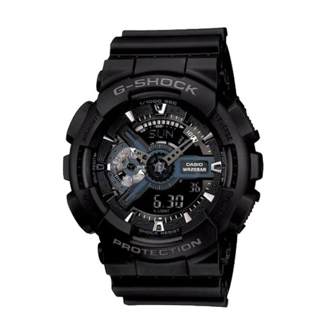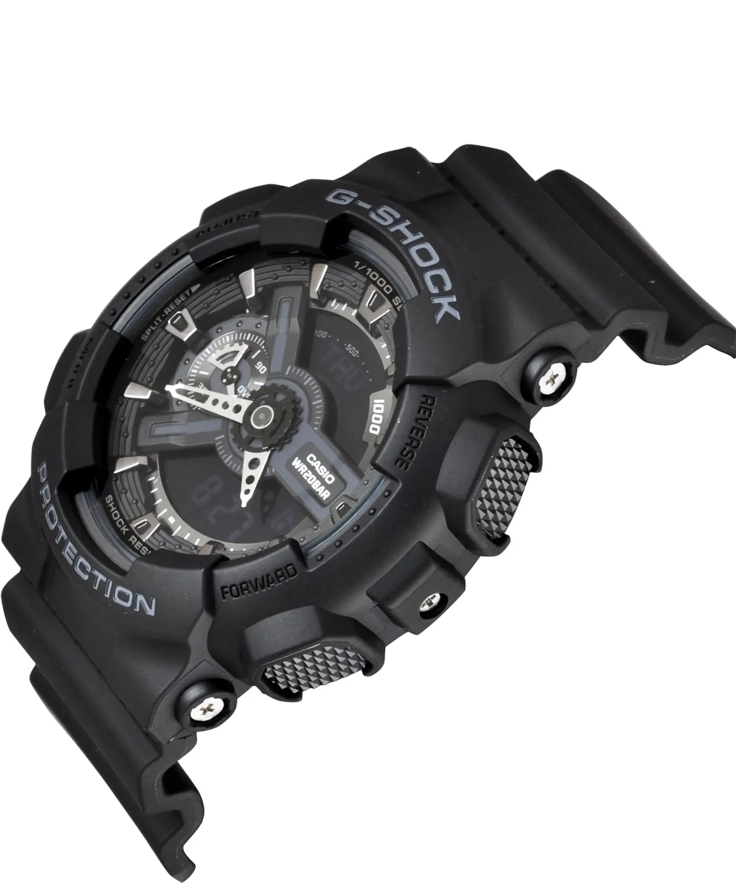 ساعت مچی مردانه G-SHOCK کاسیو مدل CASIO-GA-110-1B یکی از مدلهای شناختهشده و پرفروش خانواده جیشاک است که با ترکیب طراحی صنعتی، مقاومت فوقالعاده و جزئیات عملکردی گسترده، برای آقایانی ساخته شده که به دنبال ابزاری حرفهای و همزمان شیک هستند. بدنه و صفحه این مدل با طیف رنگی مشکی / دودی تیره طراحی شده و سبک ظاهری مدرن، خشن و شهری آن باعث میشود با استایلهای اسپرت، روزمره و اکتیو هماهنگی عالی داشته باشد. جنس بدنه از رزین مقاوم و بند از رزین و رابر انتخاب شده تا دوام بالا، انعطاف مناسب و راحتی بلندمدت را تضمین کند. استفاده از قفل سگکی نیز ثبات و امنیت بیشتری روی مچ به همراه دارد.