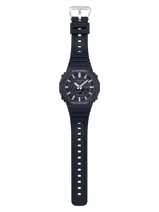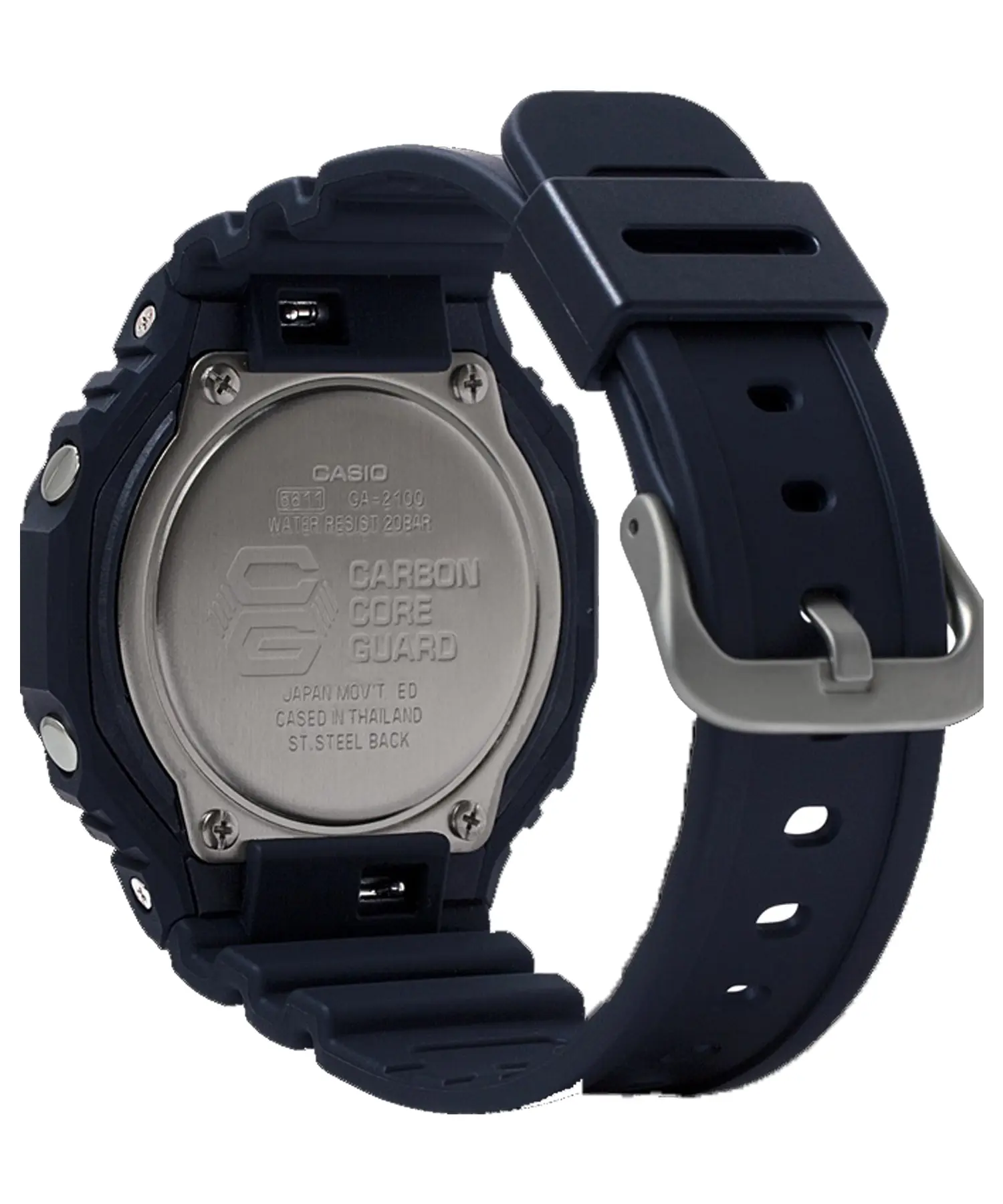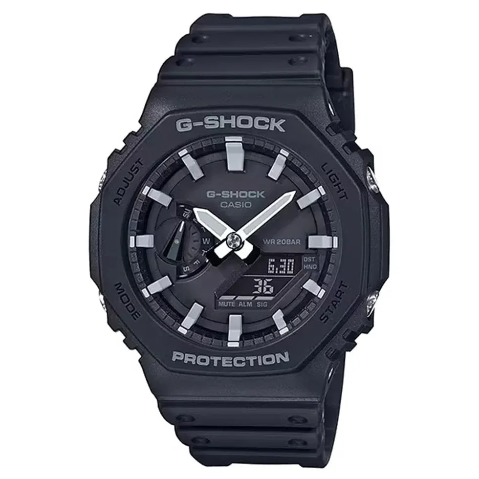 ساعت مچی G-SHOCK کاسیو مدل GA-2100-1A یکی از محبوبترین مدلهای سری کربن کُر (Carbon Core Guard) است که با طراحی چندضلعی و ظاهر کاملاً مشکی / دودی تیره، سبک مینیمال و فوقالعاده جذابی ارائه میدهد. این ساعت مناسب یونیسکس بوده و به دلیل وزن بسیار سبک 51 گرم، روی دست راحت و بدون خستگی است.