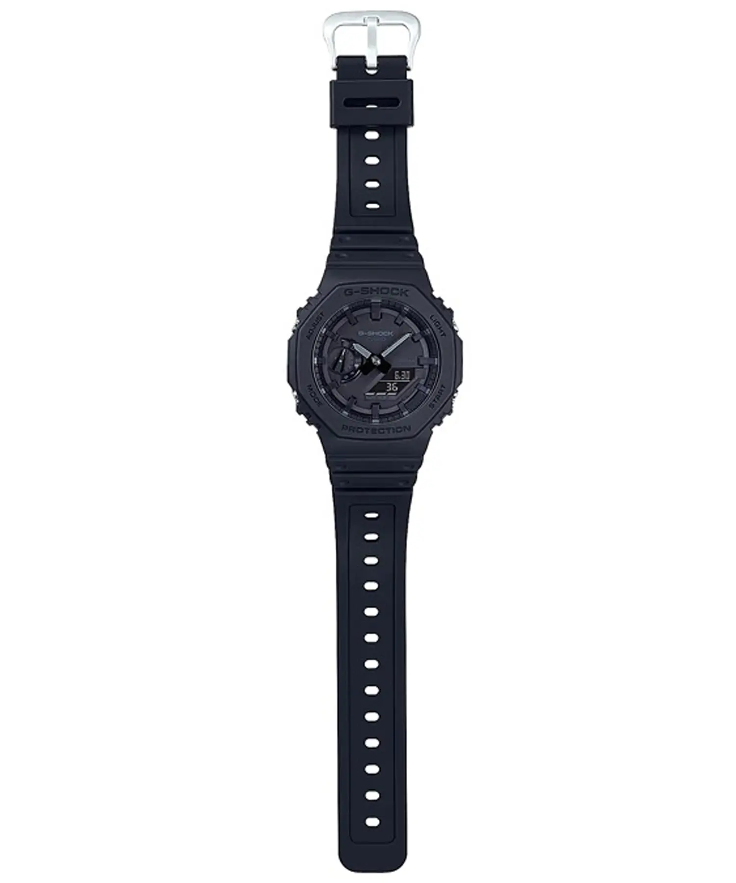 این ساعت جذاب با رنگبندی کاملاً مشکی / دودی تیره (All Black) ظاهری مینیمال، جذاب و کاملاً اسپرت دارد. بند رزینی مقاوم، با قفل سگکی ساده روی دست کاملاً ثابت است و ابعاد 48.5 × 45.4 × 11.8 میلیمتر همراه با وزن تنها 51 گرم، آن را به یکی از سبکترین جیشاکها تبدیل کرده است. این ساعت همچنین از مقاومت 200 متر در برابر آب بهره میبرد که آن را مناسب برای شنا، تمرینات سخت و ماجراجویی میکند. اگر به دنبال یک ساعت بادوام، سبک، مینیمال و فوقالعاده خوشاستایل هستید، GA-2100-1A1 انتخابی بینقص است. این محصول با گارانتی 12 ماهه پوزیترون ارائه میشود.